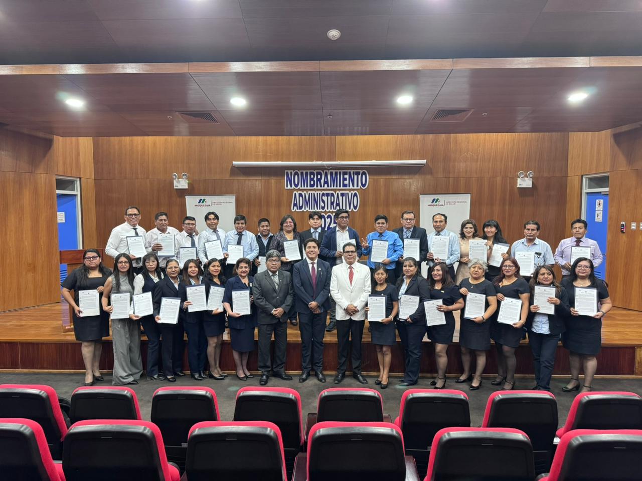 En el Hospital Regional Moquegua, un total de 38 profesionales, técnicos y auxiliares administrativos fueron nombrados oficialmente en una ceremonia especial, donde se destacó su aporte permanente al funcionamiento eficiente del principal establecimiento de salud regional.