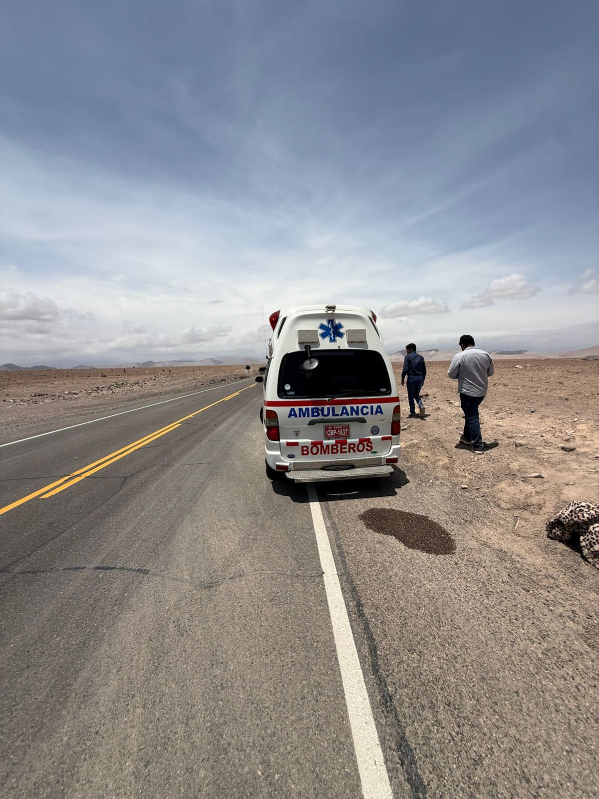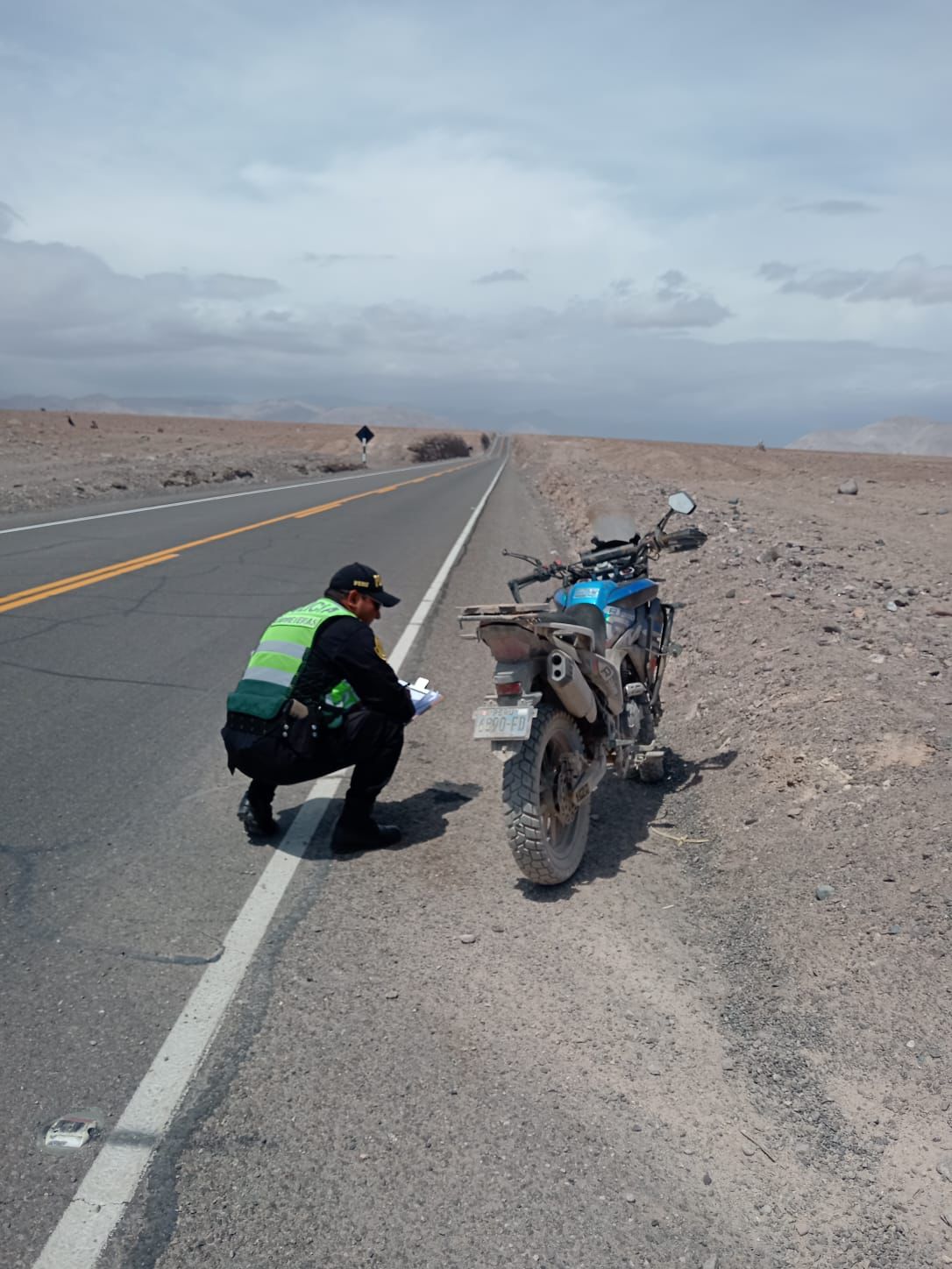El hecho ocurrió aproximadamente a las 12:00 horas, cuando una motocicleta de placa 6890-FD, que circulaba en sentido Arequipa–Moquegua, perdió el control y terminó fuera de la vía sobre la berma. El vehículo era conducido por Jan Pool Córdova Cotrina, quien viajaba acompañado de una persona de sexo femenino aún no identificada. Ambos resultaron con lesiones producto del despiste.