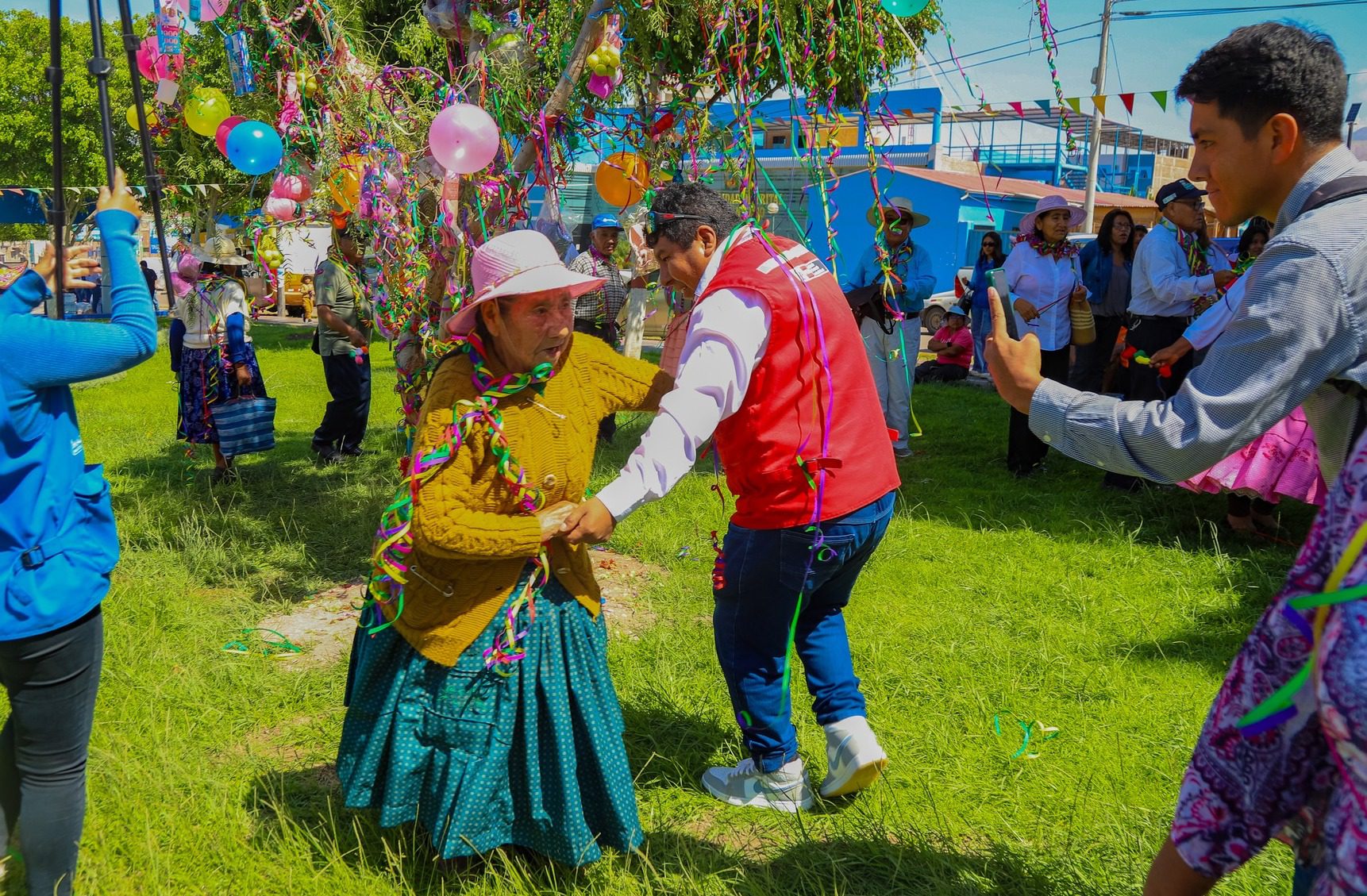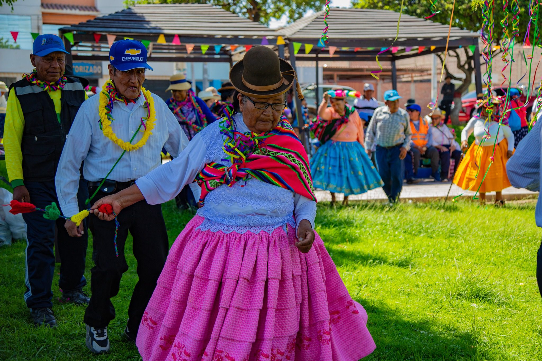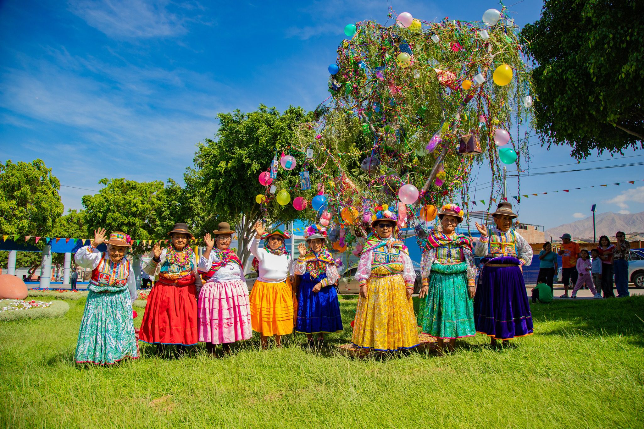 Un total de 145 adultos mayores del Centro Integral del Adulto Mayor (CIAM) del distrito de San Antonio participaron en la celebración de carnavales realizada en la plaza cívica del distrito, donde se desarrolló el tradicional ‘Pukllay Auqui’ o cortamontes.