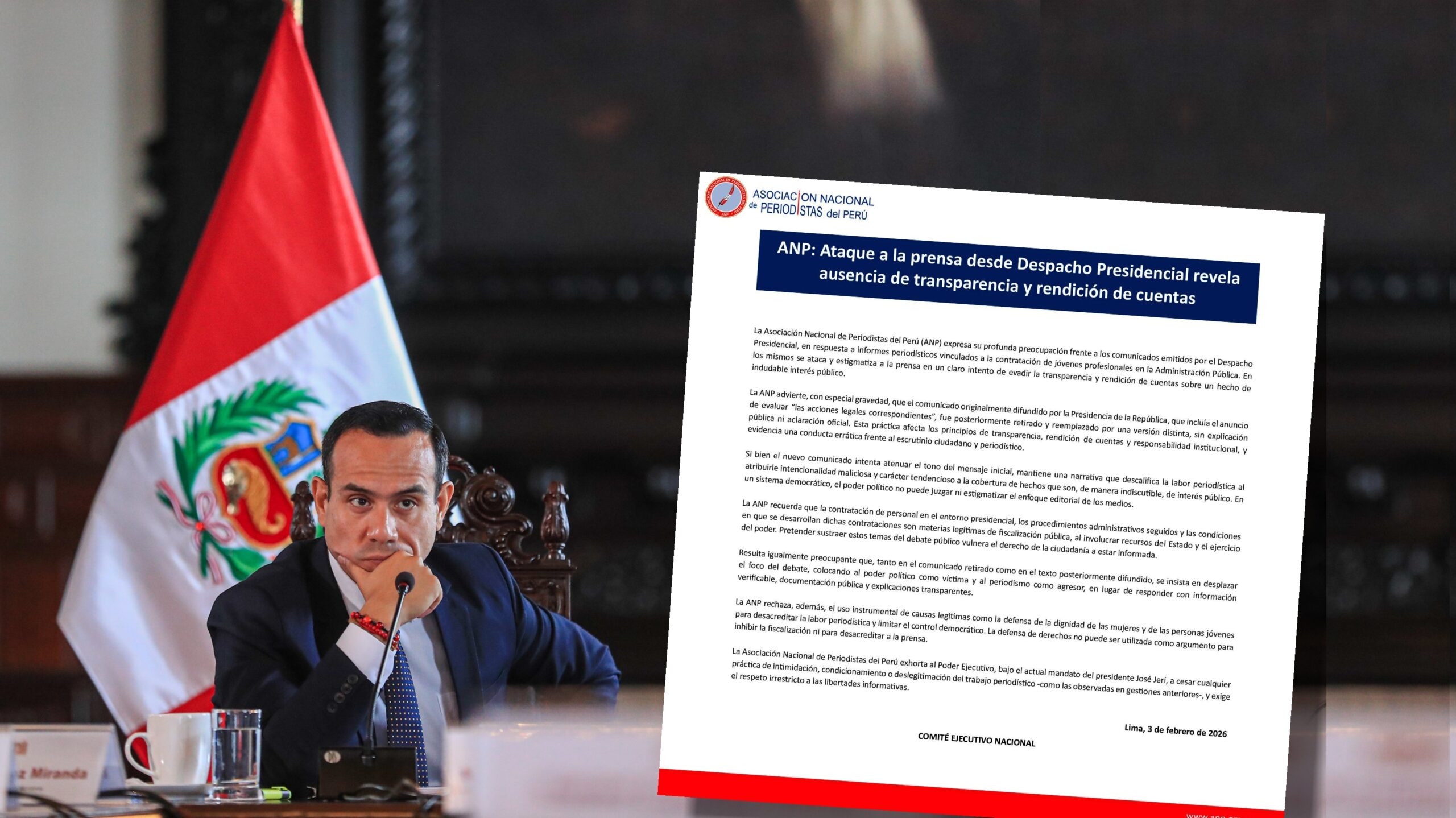 La Asociación Nacional de Periodistas del Perú exhorta al Poder Ejecutivo, bajo el actual mandato del presidente José Jerí, a cesar cualquier práctica de intimidación, condicionamiento o deslegitimación del trabajo periodístico -como las observadas en gestiones anteriores-, y exige el respeto irrestricto a las libertades informativas.