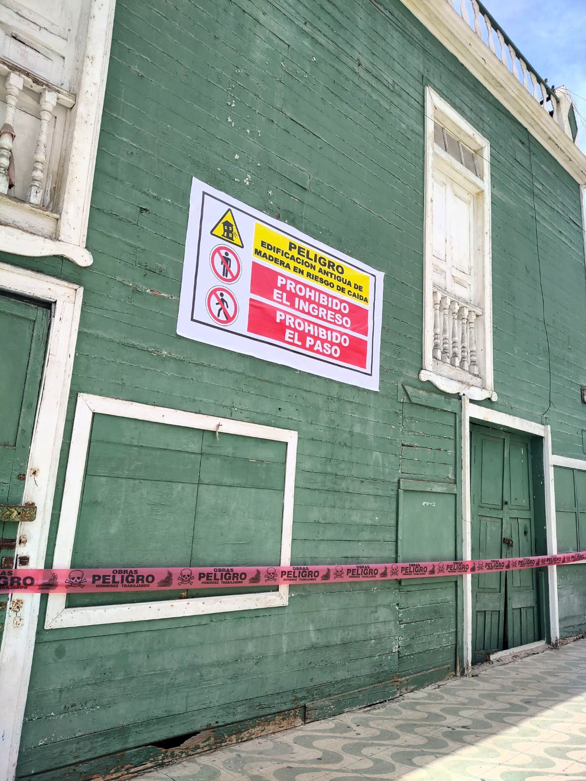 Bomberos de Mollendo colocaron carteles de prevención en el antiguo cine Teatro, advirtiendo sobre el inminente riesgo de derrumbe de la estructura. La medida refuerza la instalación de una cinta de seguridad alrededor del local, con el objetivo de evitar el ingreso y el tránsito de personas por la zona.