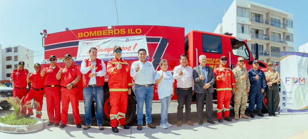 Por su parte, el alcalde provincial Humberto Tapia Garay manifestó su satisfacción por contribuir al fortalecimiento de la capacidad de respuesta del cuerpo de bomberos, reafirmando el rol del FDM en la atención de necesidades prioritarias en educación, salud, agricultura y desarrollo social en las tres provincias de Moquegua. “Es falso que el Fondo de Desarrollo Moquegua se esté desnaturalizando; hemos atendido problemáticas gracias al aporte de Anglo American Quellaveco”, afirmó.