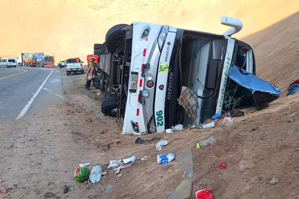 Un bus de la empresa Transportes Moquegua volcó la madrugada del sábado 26 de abril en el kilómetro 1057 de la Panamericana Sur, sector El Fiscal, distrito de Cocachacra, provincia de Islay, dejando varios heridos y un fallecido. La unidad había salido de Tacna a las 10:30 p.m. de este viernes, rumbo a Arequipa, transportando a 60 pasajeros.