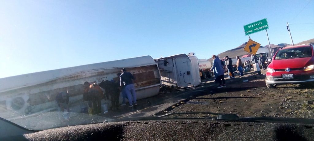 Despiste volcadura y derrame de aceite de cisterna boliviano en Chilligua Carumas 04052024 13 e1714881617414 La Prensa Regional