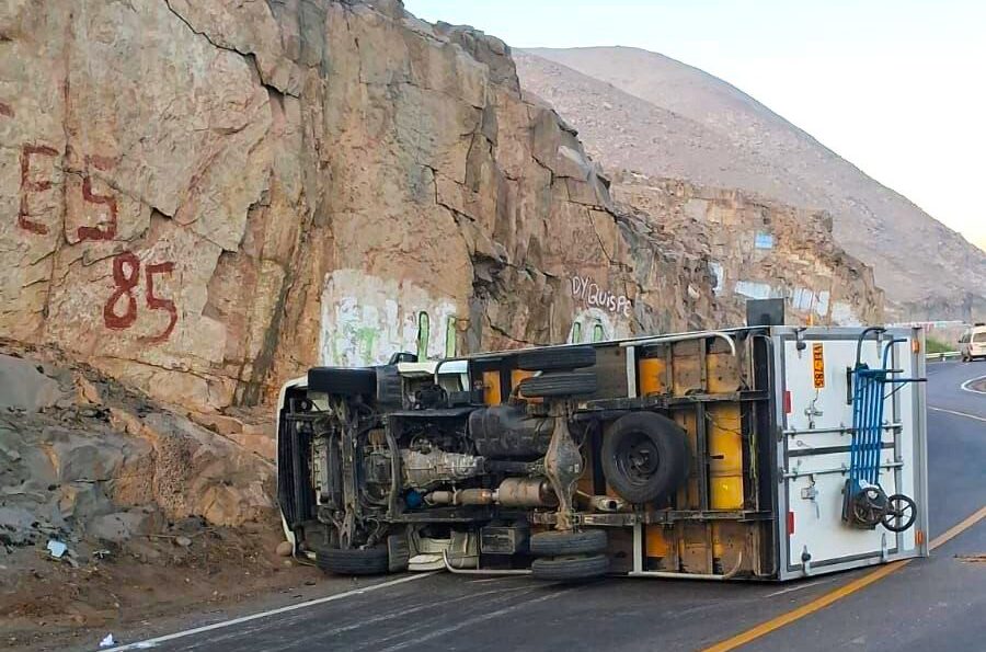 Un pequeño camión se despistó y volcó la madrugada de este viernes en la Panamericana Sur cerca del sector de Ventillata, en el distrito de Cocachacra, provincia de Islay. El accidente ocurrió aproximadamente a las 5:30 a.m. y dejó como saldo daños materiales.