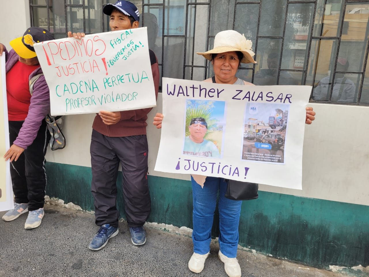 Portando pancartas y alzando la voz con arengas, familiares y vecinos de Ilo realizaron una protesta en los exteriores de la División de Investigación Criminal (DIVINCRI), exigiendo justicia y la máxima sanción para el docente Walter Salazar Alvarado.
