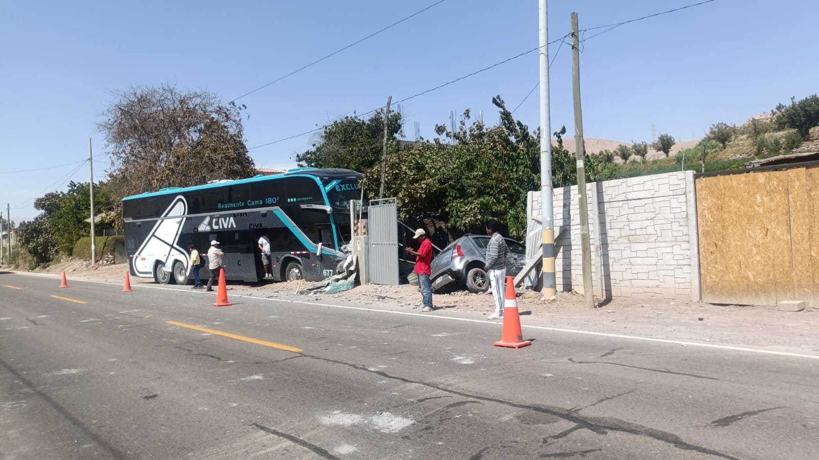 Un grave accidente de tránsito se registró la tarde de ayer martes 6 de enero en el valle de Moquegua, a la altura del kilómetro 1158+200 de la carretera Panamericana Sur, sector Conde–La Rinconada, donde un bus interprovincial de la empresa CIVA y un vehículo particular colisionaron violentamente, terminando ambos empotrados contra una vivienda.
