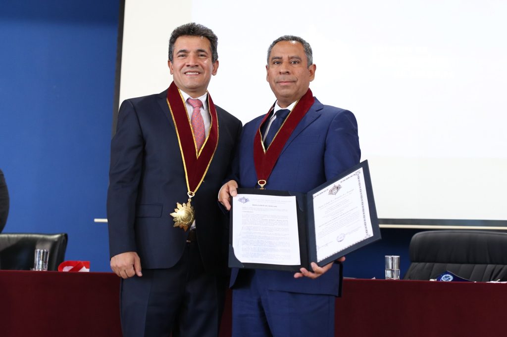 El titular del TC recibió el reconocimiento institucional con el diploma y medalla de honor al mérito jurídico en el grado del jurista arequipeño “Francisco García Calderón y Landa”.