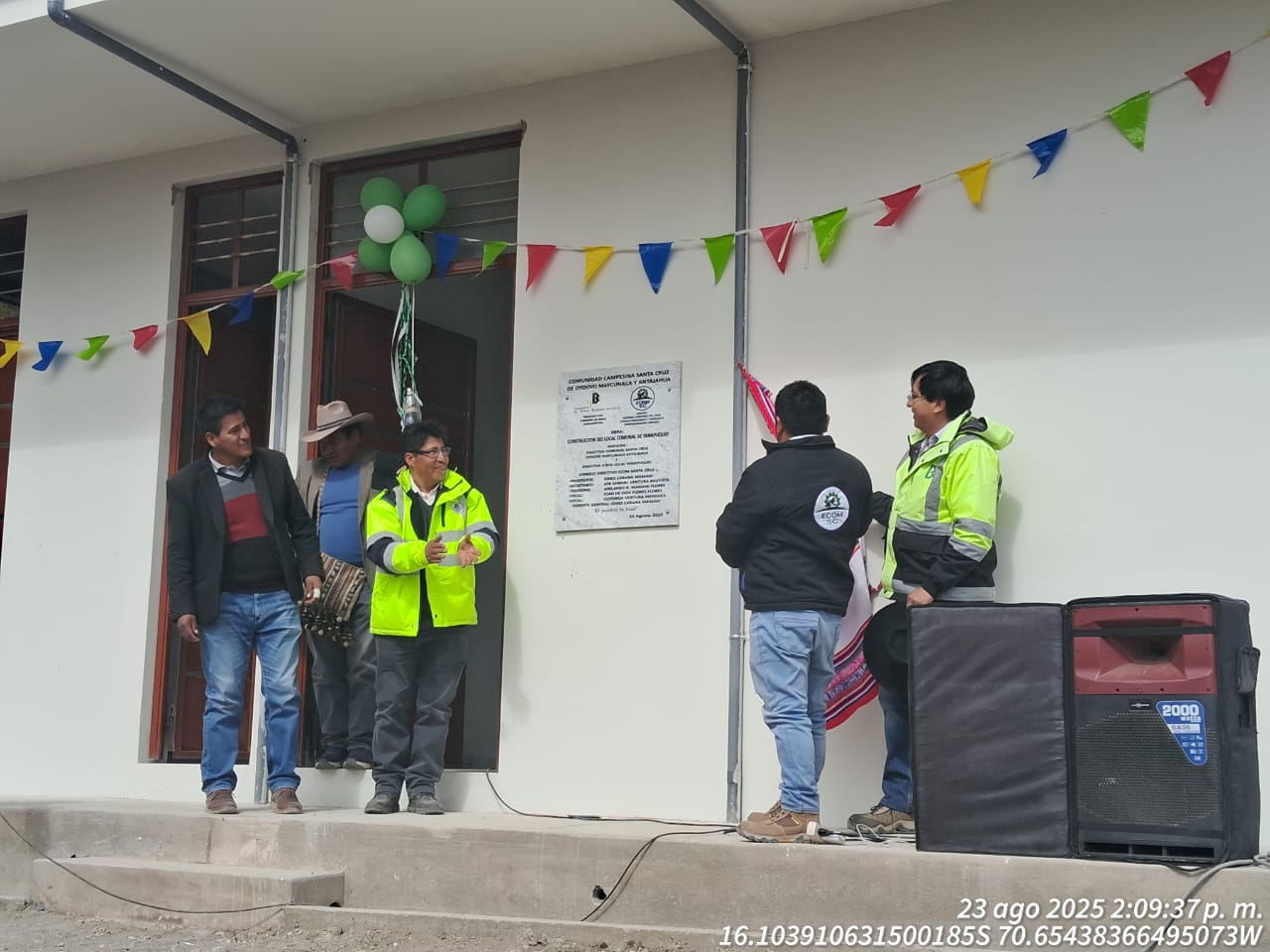 En la ceremonia de recepción e inauguración del moderno local comunal estuvieron representes de la Junta Directiva Comunal, Junta Local de Yanapuquio, población local y representantes del proyecto minero.