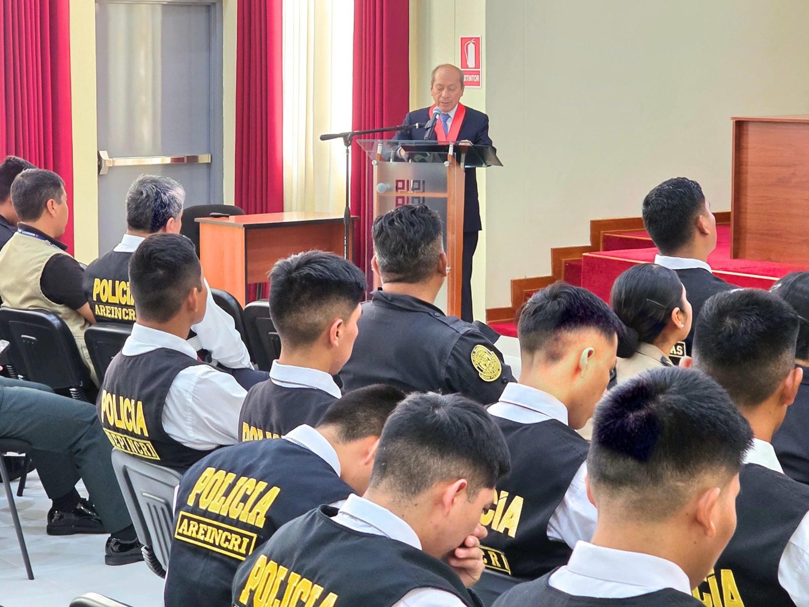 La actividad académica se realizó en el auditorio de la Corte Superior de Justicia de Moquegua y contó con la participación de 45 efectivos de la Policía Nacional del Perú y 38 integrantes de Serenazgo, quienes recibieron capacitación especializada sobre los procedimientos legales aplicables durante las intervenciones en flagrancia.