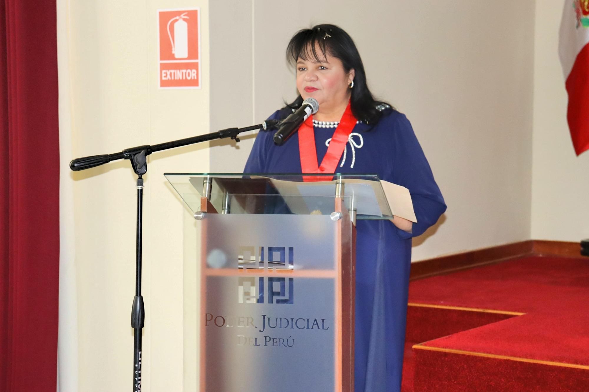 Seguidamente, el presidente de la Corte, Dr. Jorge Guillermo Fernández Ceballos, ofreció un discurso en el que resaltó la probidad, vocación de servicio y compromiso de la Dra. Judith Alegre Valdivia con los valores de la justicia, subrayando que su trayectoria constituye un referente para las actuales y futuras generaciones de magistrados.