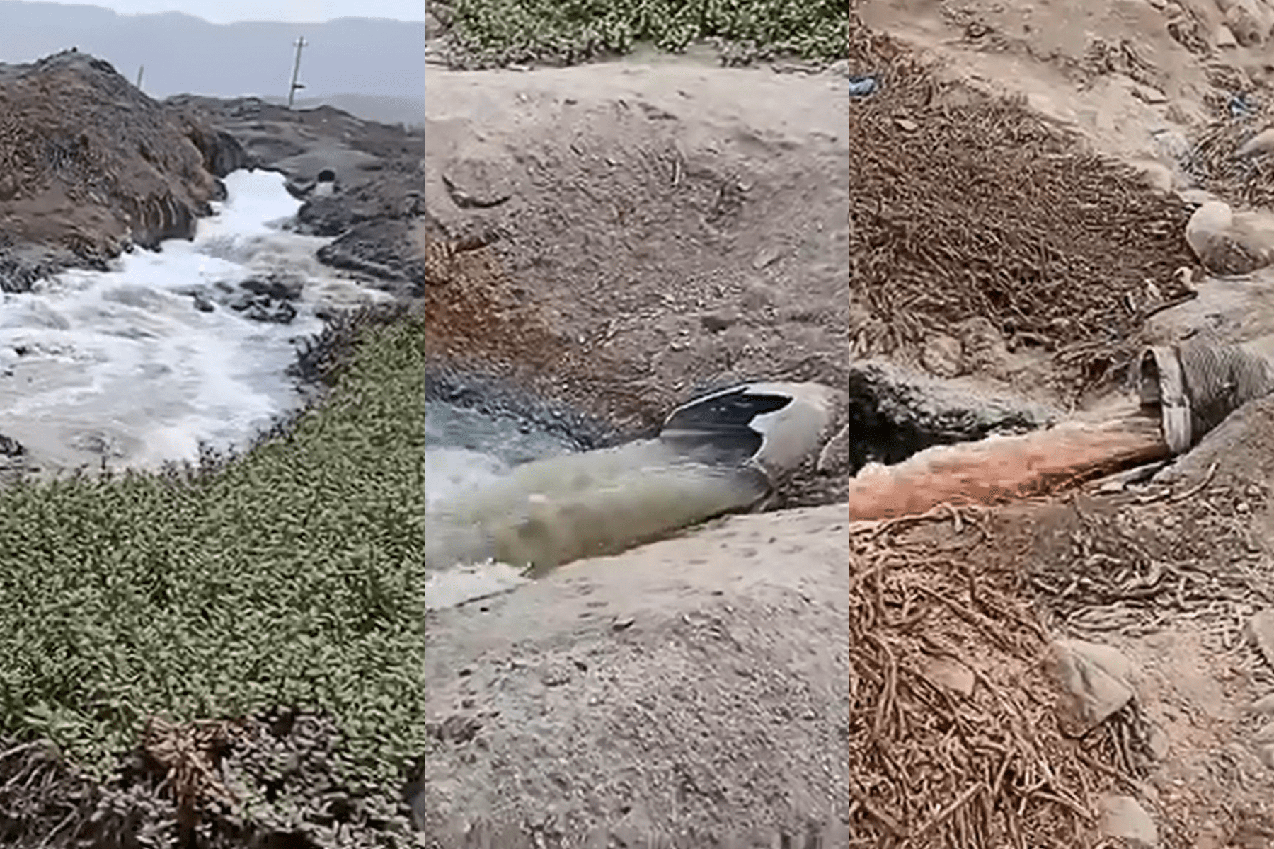Hasta el lugar se constituyó el monitor ambiental Jorge Álvarez Apaza, quien constató que las aguas residuales son descargadas directamente y desembocan en la playa, generando un impacto ambiental visible en la zona.
