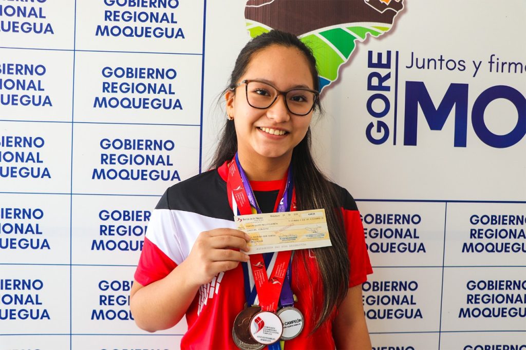 La deportista moqueguana Cecilia Valentina Zea Huacán (16) fue reconocida por el Gobierno Regional de Moquegua por sus importantes logros en torneos internacionales.