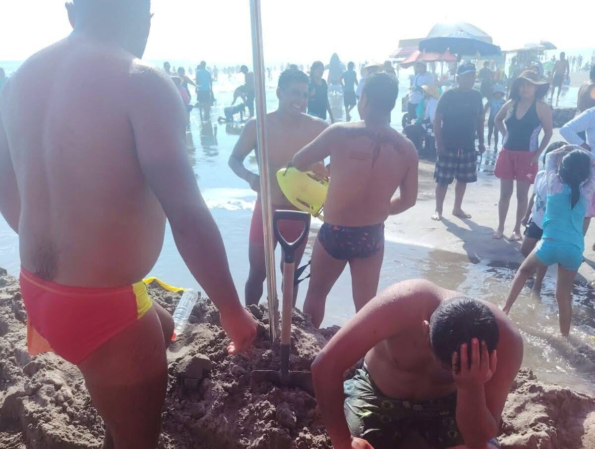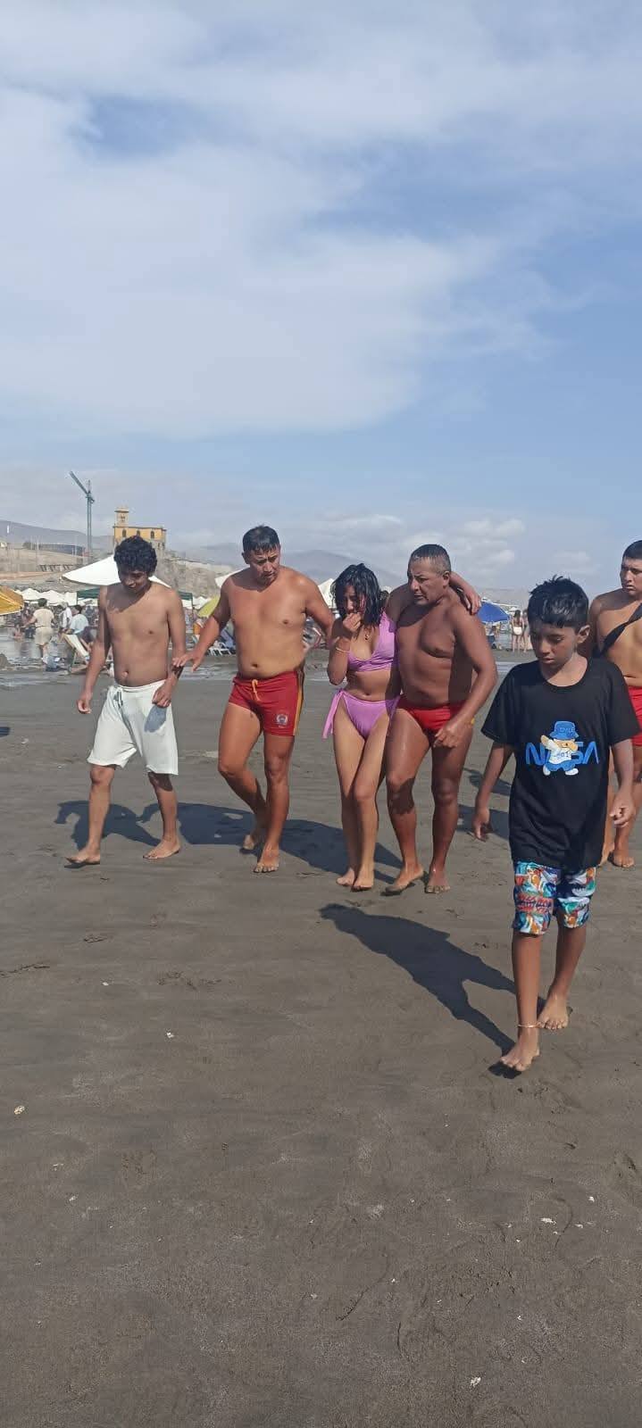 El primer caso se registró a las 15:35 horas, en la primera playa, cuando los rescatistas advirtieron que una persona era arrastrada por una fuerte corriente mar adentro, a una distancia aproximada de 180 metros de la orilla.
