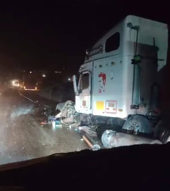 En el kilómetro 1021 de la carretera Panamericana Sur, en el distrito de Cocachacra, un choque frontal dejó a una camioneta incrustada bajo las ruedas de un camión de carga.