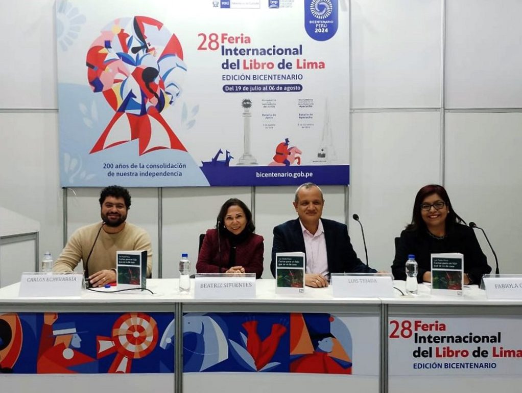 El lunes 29 de julio, en el marco de la Feria Internacional del Libro FIL Lima 2024, se vivió un momento especial con la presentación del libro «Cartas para un Hijo que se va de Casa» del autor Luis Tejada Ponce. El evento, realizado en el auditorio “Laura Riesco”, contó con un conversatorio entre el autor, Carlos Echevarría, Beatriz Sifuentes y Fabiola Ovalle, y destacó por su emotividad y conexión con el público.
