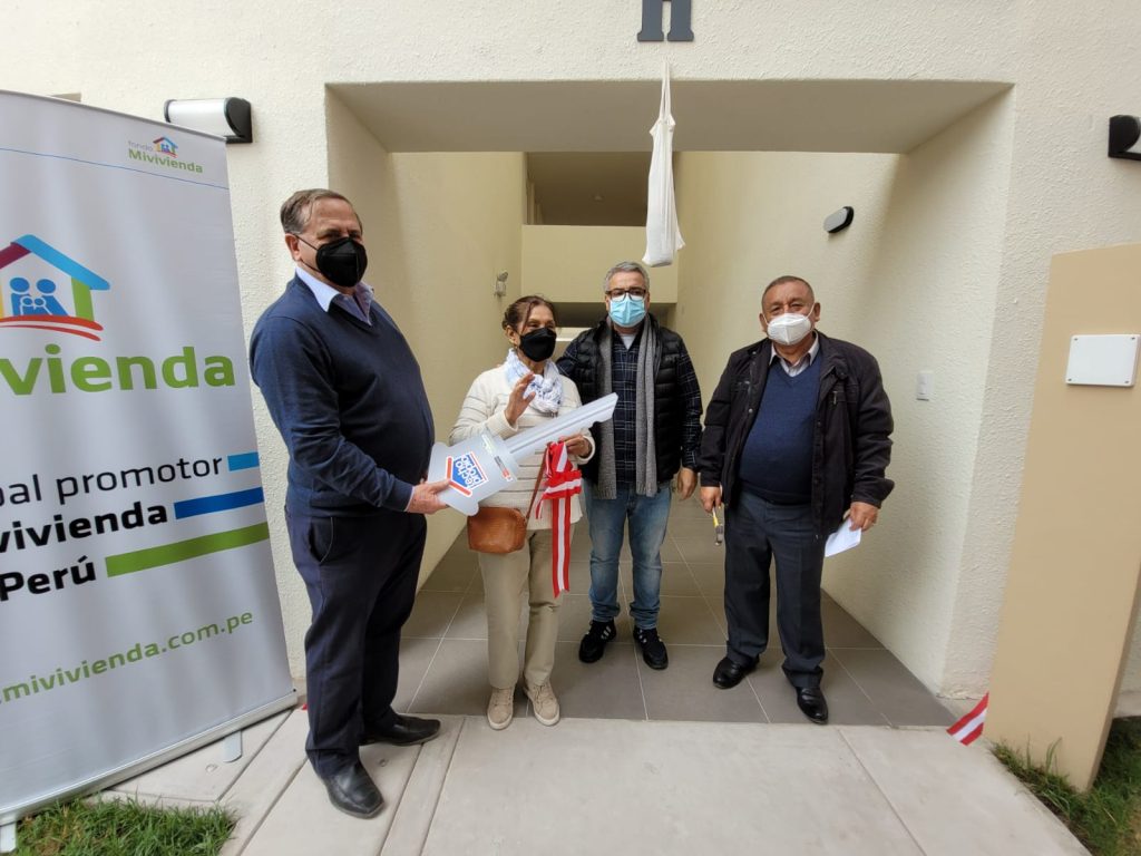 El bloque “H” fue apadrinado por el Ing. Juan Enrique Pardo Olazábal, representante del Consorcio GYD2 y el Arq. Jaime Chávez Medina, gerente de Desarrollo Urbano del municipio de Pacocha, entrega de llaves al Sr. Alexander Fuentes, propietario del Dpto. H-102.