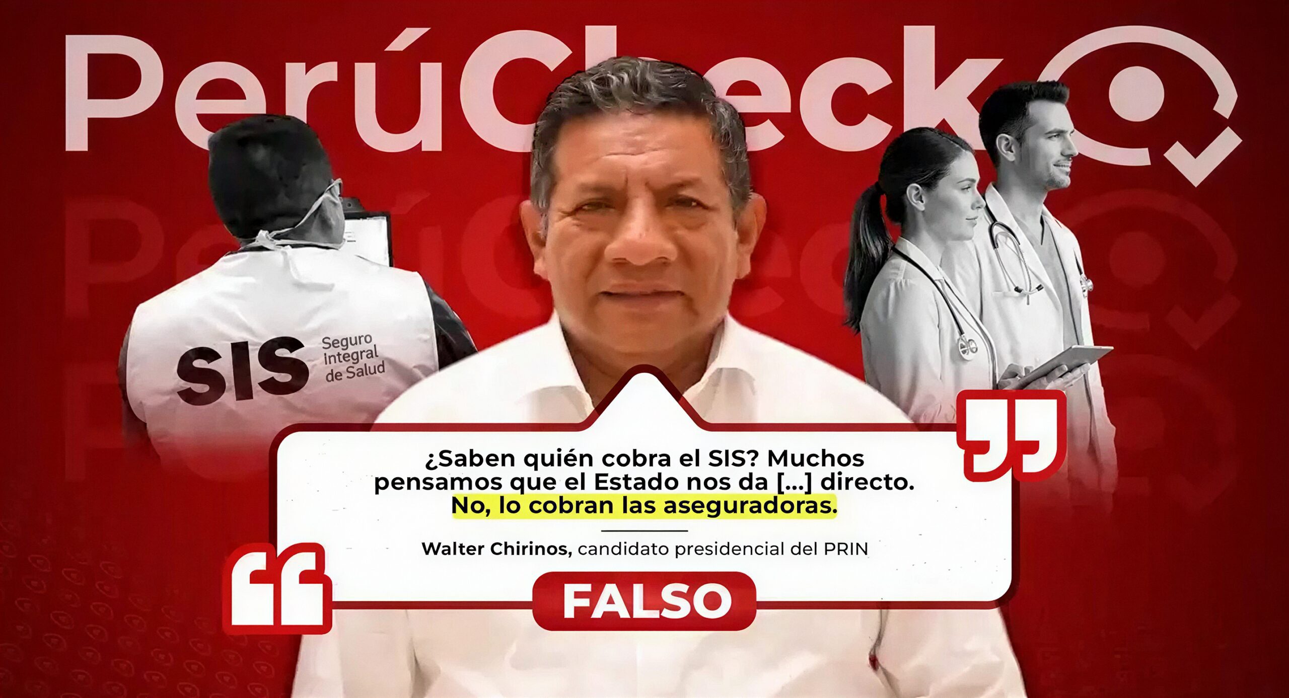 El Seguro Integral de Salud (SIS) no contrata aseguradoras y no opera con intermediarios. Las transferencias dinerarias que realiza el Estado por el SIS se hacen directamente a los hospitales y a las unidades ejecutoras del Estado. Por tanto, PerúCheck califica las declaraciones de Chirinos como falsas.