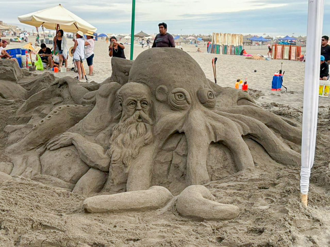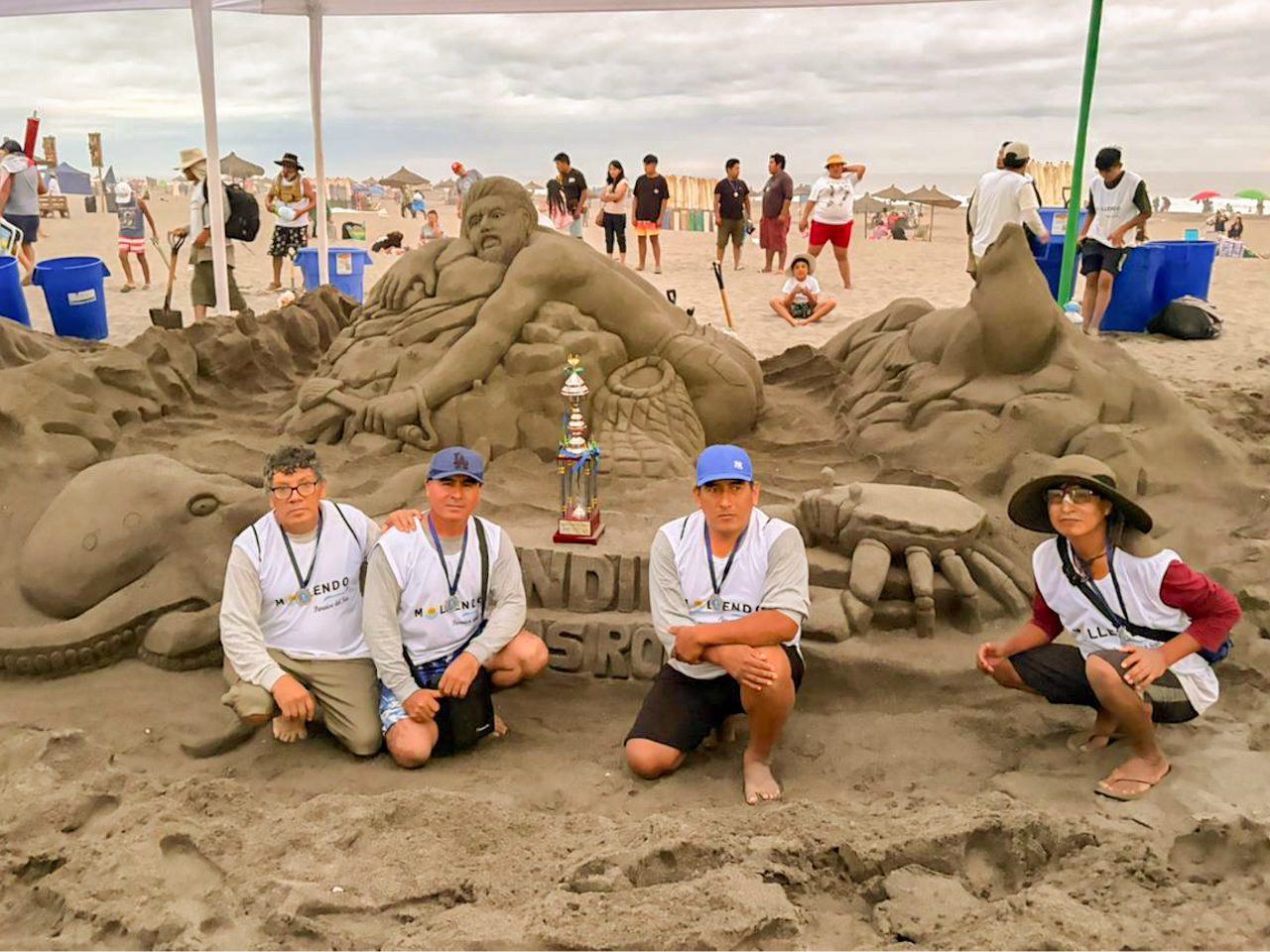 Los equipos ganadores del Concurso de Esculturas en Arena fueron definidos tras una jornada de aproximadamente ocho horas de trabajo continuo en la Primera Playa de Mollendo, ante la presencia de vecinos y visitantes.