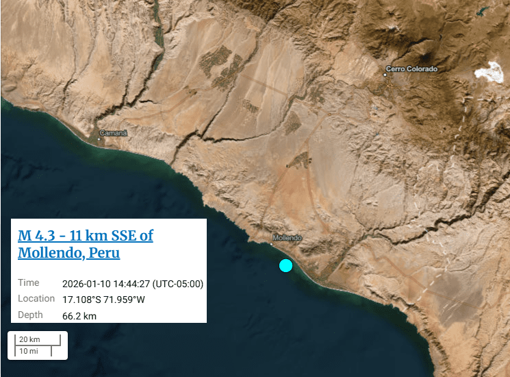Mapa Sismo USGS Mollendo 4.3 10012026 La Prensa Regional