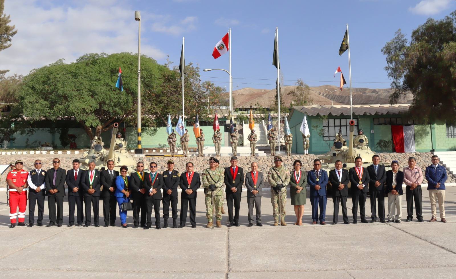La actividad protocolar fue presidida por el Prefecto Regional de Moquegua y contó con la participación de las principales autoridades civiles y militares de la región, quienes acompañaron este acto institucional de relevancia para la organización militar en el sur del país.