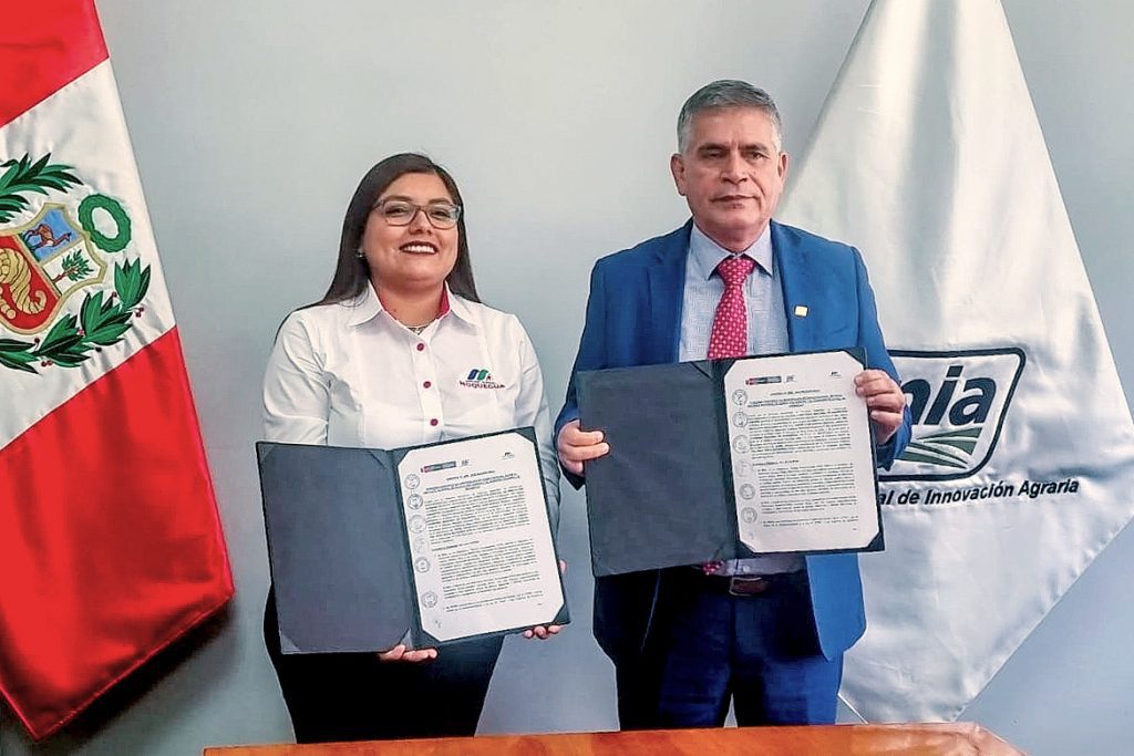 La gobernadora regional de Moquegua, Gilia Gutiérrez, y el jefe del Instituto Nacional de Innovación Agraria (INIA), Jorge Juan Ganoza Roncal, firmaron un convenio de cooperación interinstitucional con el objetivo de fortalecer la capacidad técnica y mejorar la productividad y sostenibilidad de la agricultura en la región.