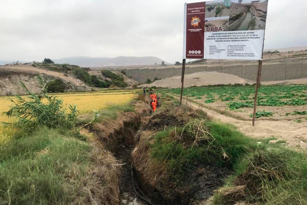 El Gobierno Regional de Arequipa, a través de la Gerencia Regional de Agricultura inició las mejoras en el sistema de riego en los laterales 20A, 21A, 22A, 23A y 27 de la Comisión de usuarios Mollendo en la provincia de Islay, lo cual beneficiará a 220.95 hectáreas de cultivo.
