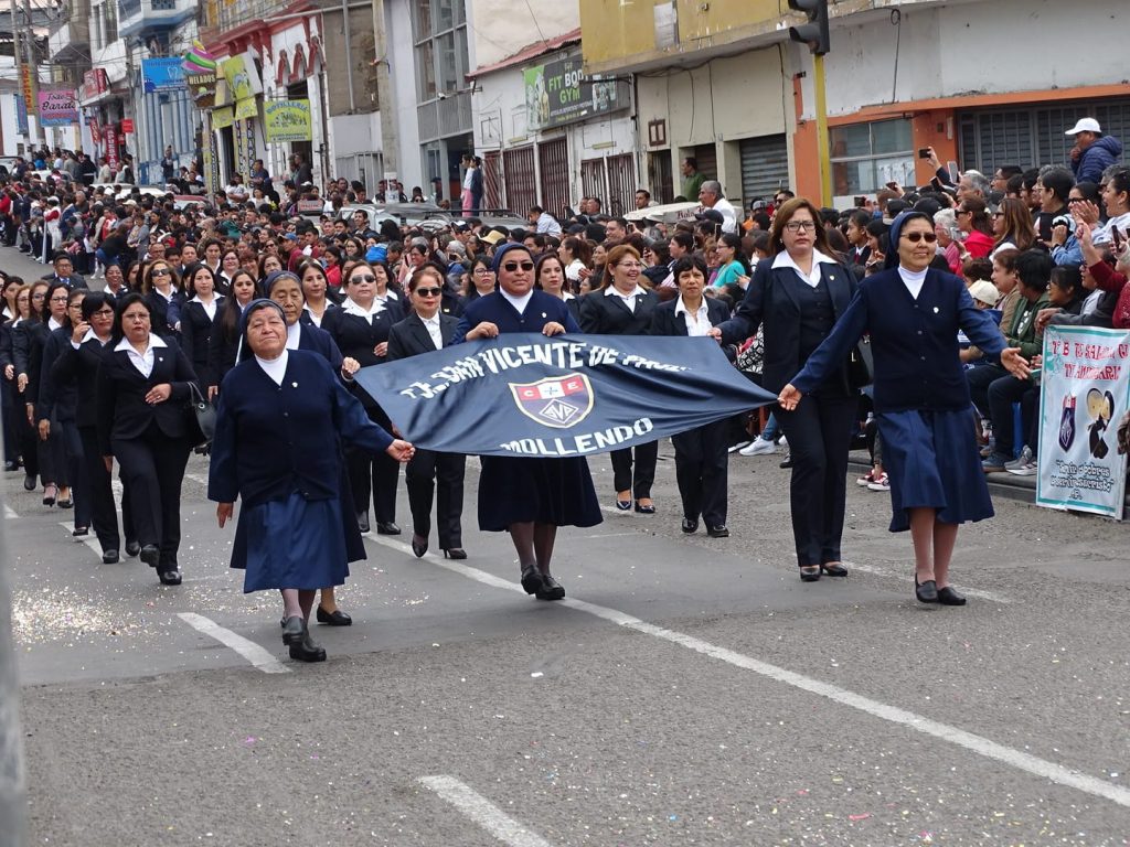 El paso de las diversas promociones del plantel, fue acompañado por primera vez por la banda de exalumnos y exalumnas del colegio San Vicente de Paul generando el aplauso y la algarabía de la concurrencia quienes ovacionaron durante su paso en la plaza Bolognesi.