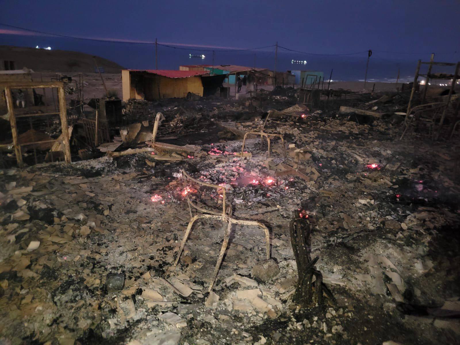 Un incendio de gran magnitud redujo a cenizas nueve viviendas del asentamiento humano 28 de Julio, en el sector Pampa Inalámbrica del puerto de Ilo, la tarde de este domingo 19 de octubre.
