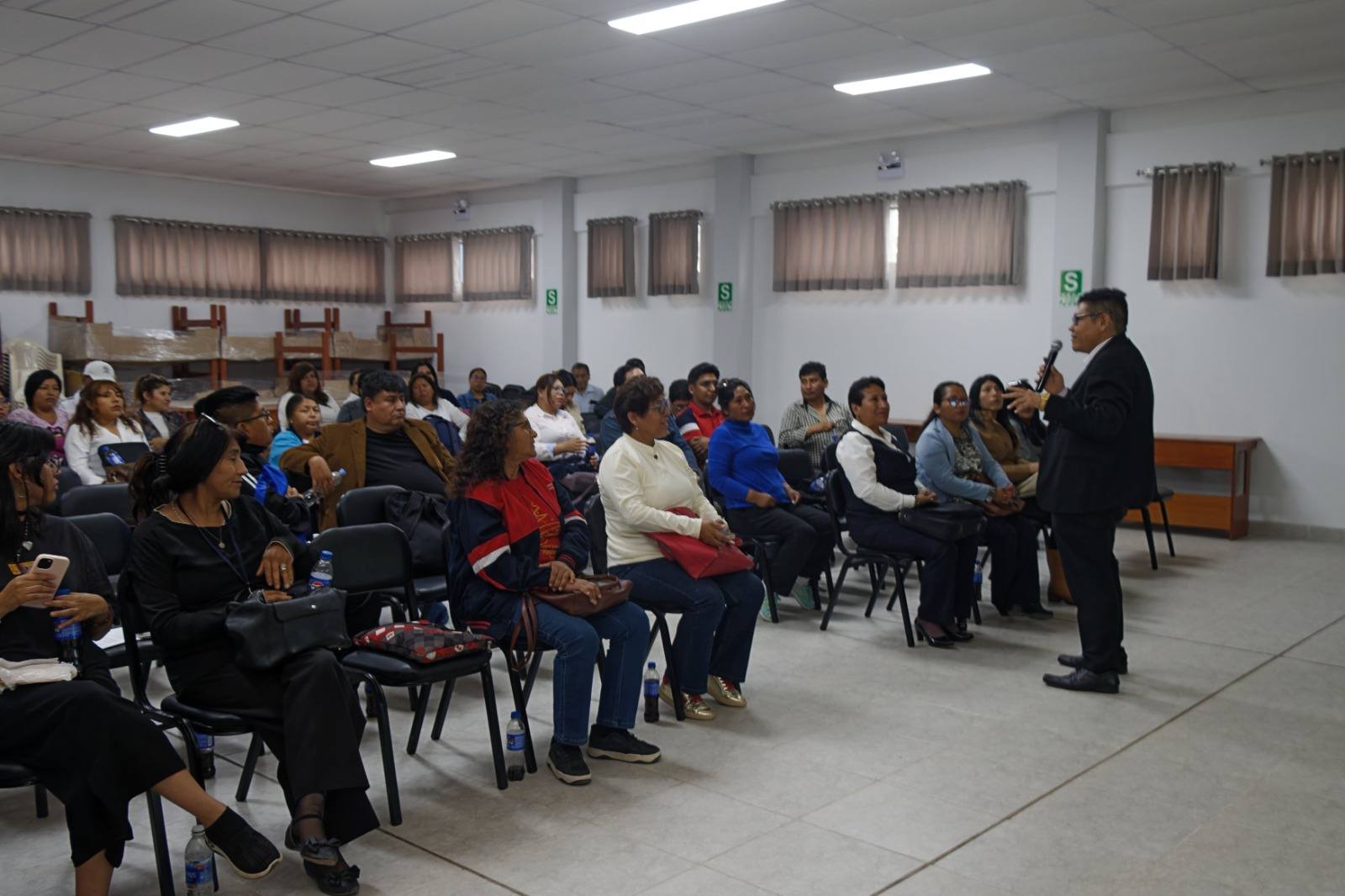 El primer módulo estuvo a cargo del expositor José Alejandro Filinich Cutipa, quien presentó la estructura del proyecto de investigación que los docentes desarrollarán durante las sesiones. También explicó la relevancia de la actualización profesional y del trabajo investigativo en el ámbito educativo.