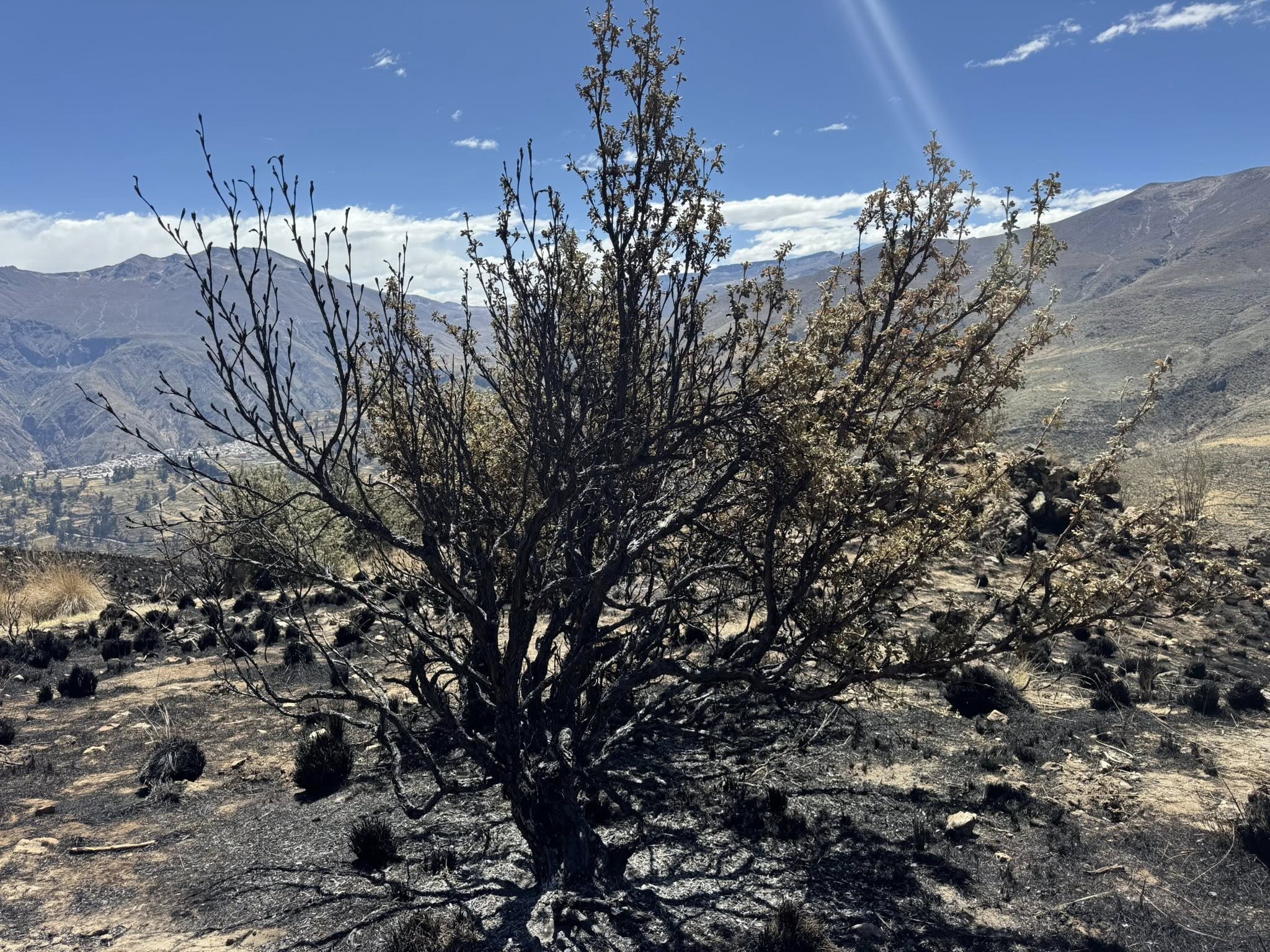 “El fuego se originó en una chacra privada donde una pobladora intentó quemar rastrojos. El viento expandió rápidamente las llamas por las laderas secas”, explicó Barrios desde el lugar. Precisó que 20 hectáreas dañadas corresponden al proyecto forestal y las otras 20 a terrenos agrícolas colindantes. Los plantones quemados habían sido instalados como parte de una etapa piloto financiada por el GORE con apoyo logístico de una empresa donante.