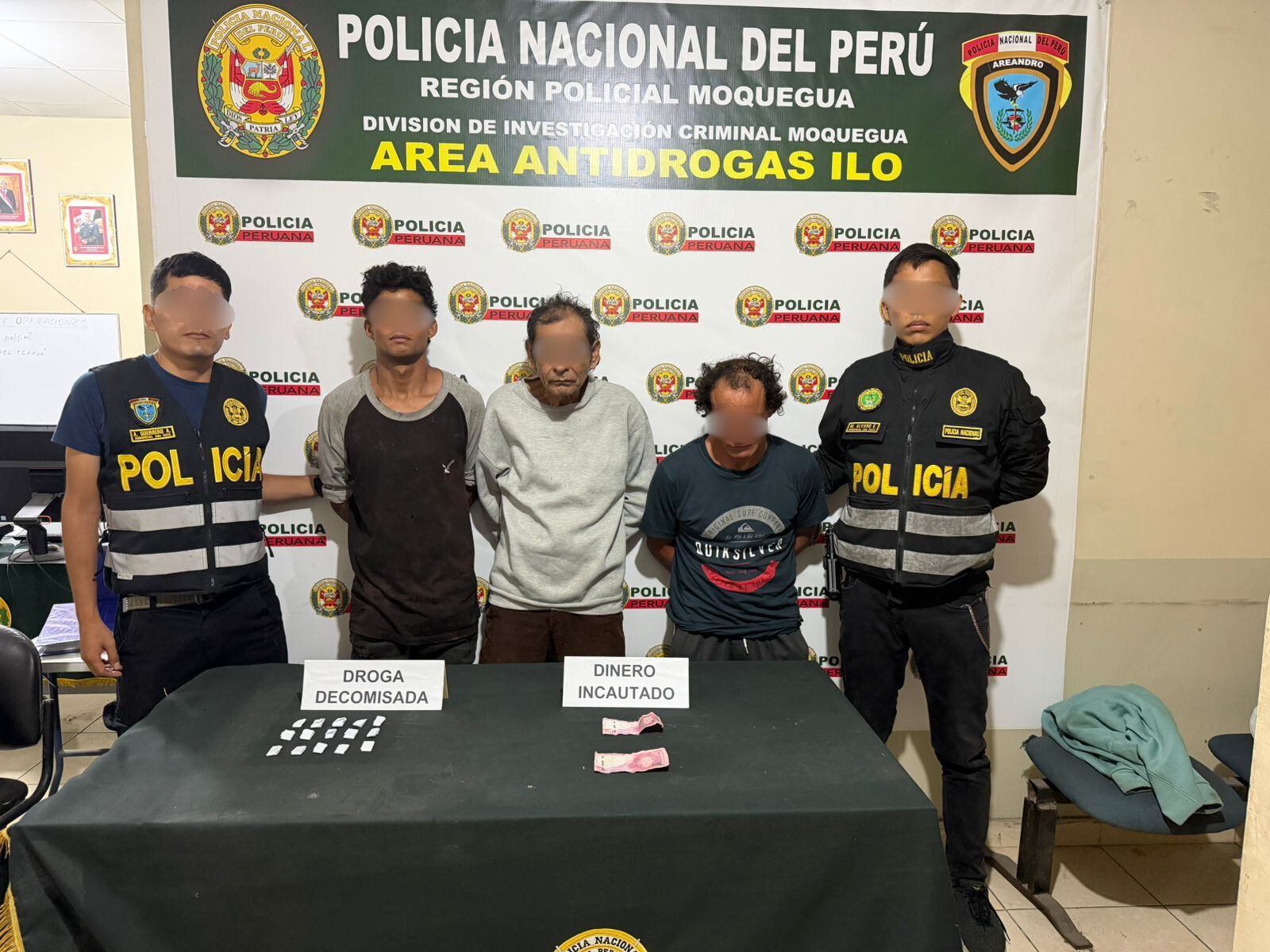 Los intervenidos fueron detenidos por el presunto delito contra la salud pública, en la modalidad de tráfico ilícito de drogas (micro comercialización), y puestos a disposición de la Policía Judicial de Ilo. El hecho fue comunicado al representante del Ministerio Público.