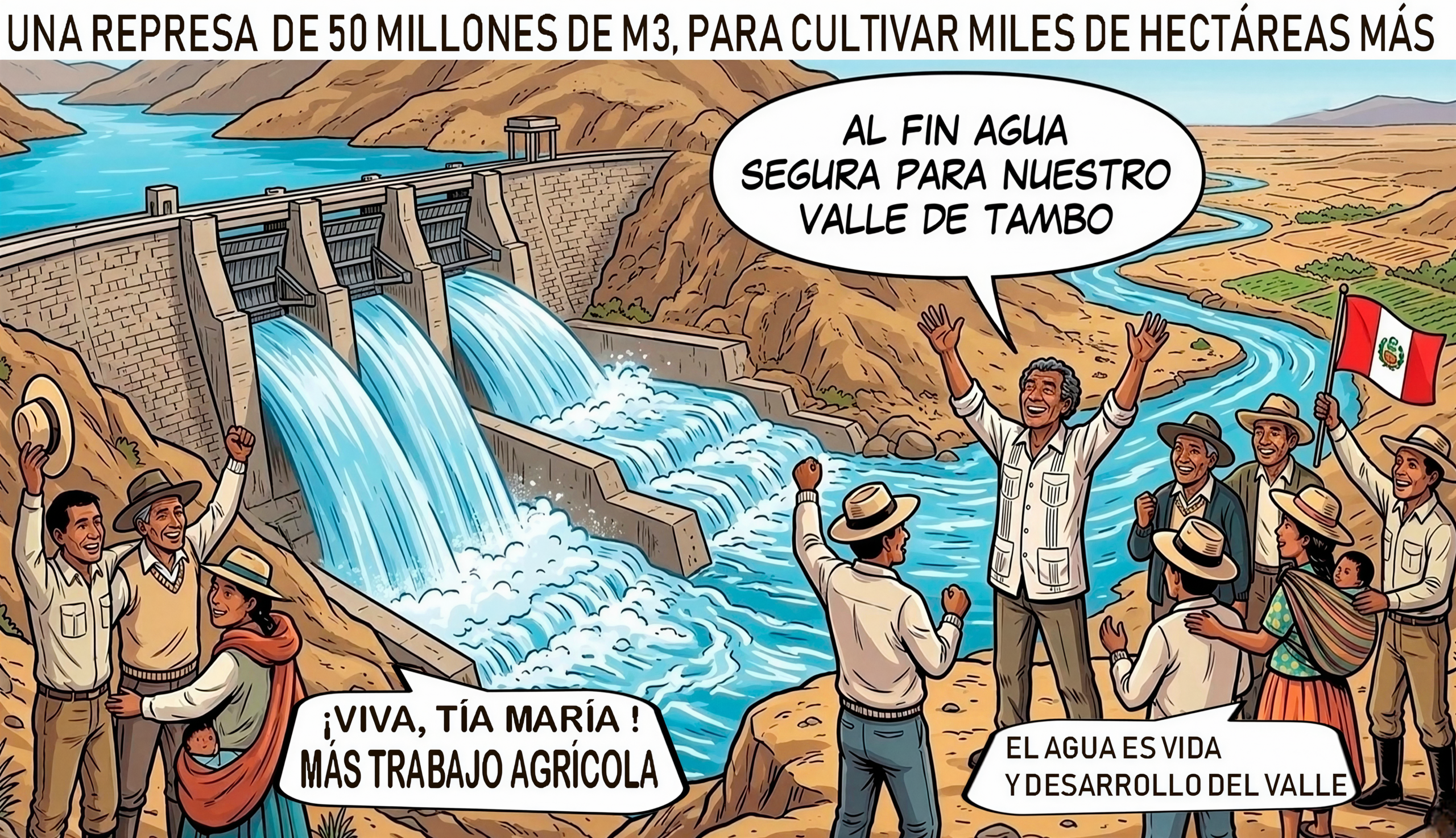 Este compromiso de la empresa minera Southern Peru y su proyecto Tía María cambiará totalmente los destinos de miles de personas. Controlar el agua mediante una represa es lo más adecuado para los procesos agrícolas a gran escala.