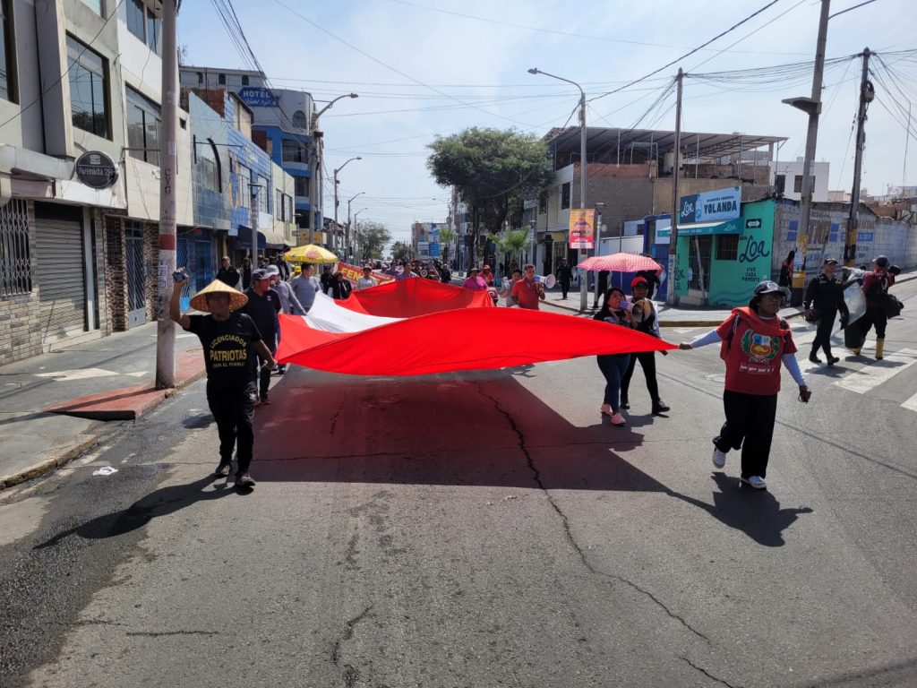 La movilización se inició en la Plaza de la Bandera, ubicada en la zona de Pampa Inalámbrica, desde donde los manifestantes recorrieron las principales calles de la ciudad, exigiendo a viva voz acciones concretas y efectivas por parte de las autoridades frente a la ola de criminalidad que afecta a la población.