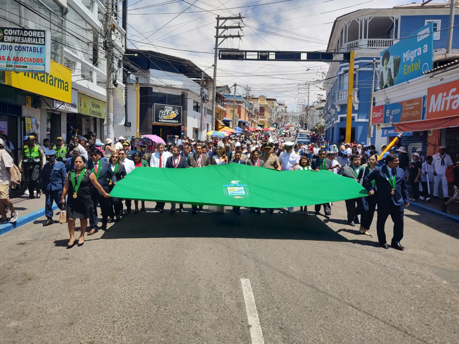 El programa concluyó con el desfile cívico-militar, que contó con la participación de instituciones educativas, adultos mayores, delegaciones distritales, trabajadores municipales, veteranos de guerra, personal policial en retiro y unidades de la Marina de Guerra, Ejército, Fuerza Aérea y Policía Nacional.