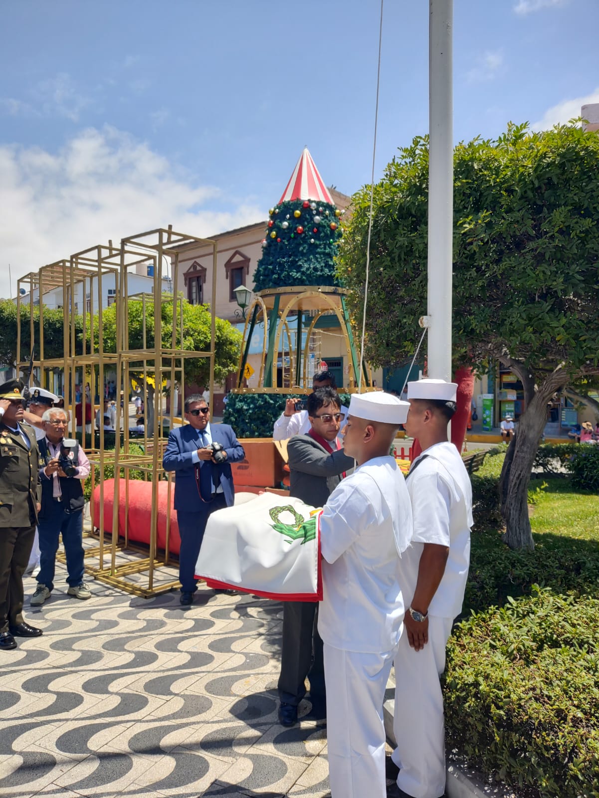 Durante el discurso de orden, el alcalde anunció proyectos como la plaza cívica de Alto Inclán, el malecón Ratti, el Castillo Forga, la nueva comisaría valorizada en cerca de S/ 15 millones y un proyecto de seguridad ciudadana por S/ 12 millones. También se entregaron reconocimientos, entre ellos al comisario PNP Erick Alarcón Gallegos, próximo a dejar el cargo.