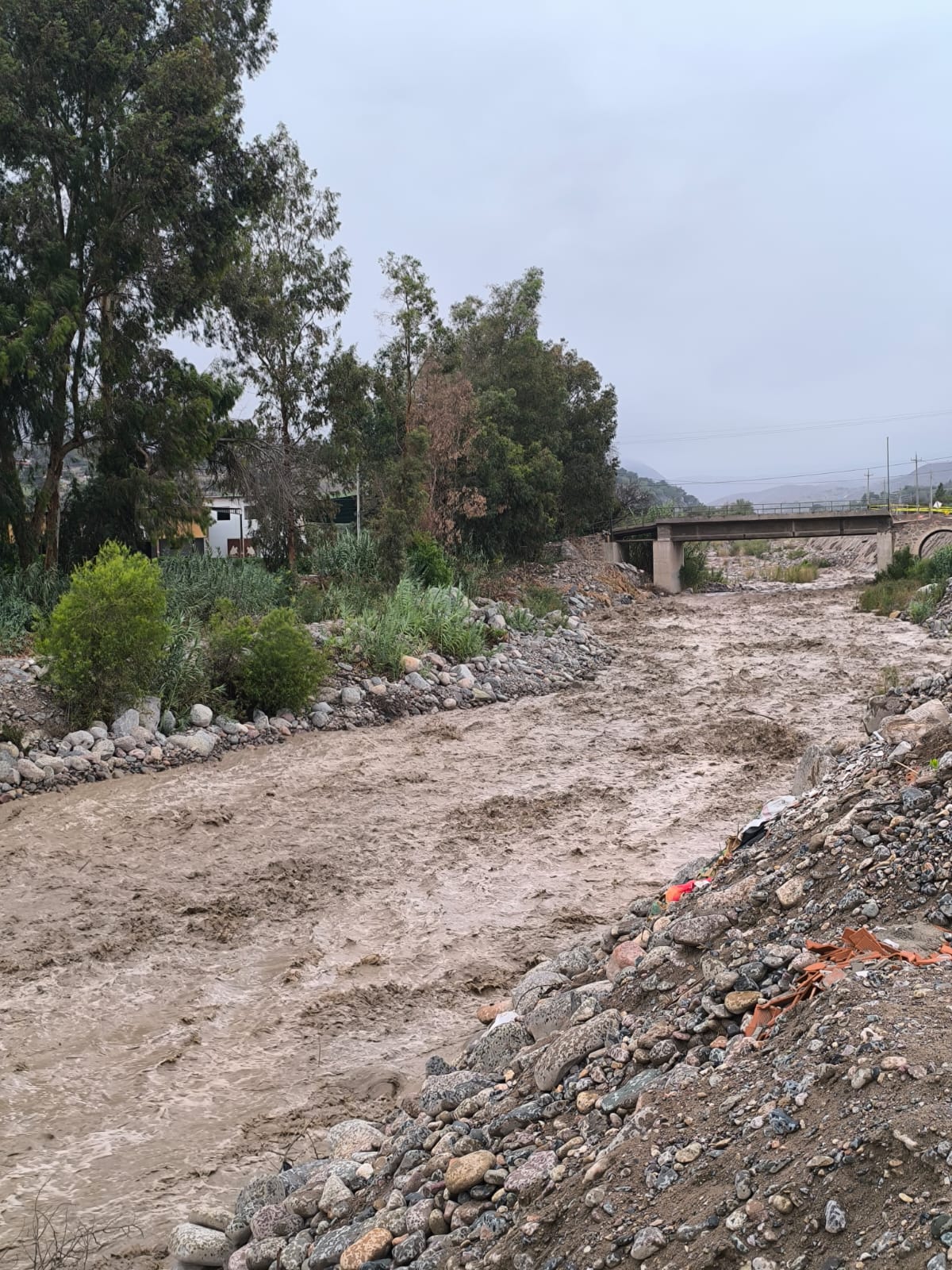 Asimismo, indicó que las fuertes lluvias registradas el último miércoles 29 de enero provocaron el incremento del caudal del río Tumilaca, que alcanzó aproximadamente 30 metros cúbicos por segundo.
