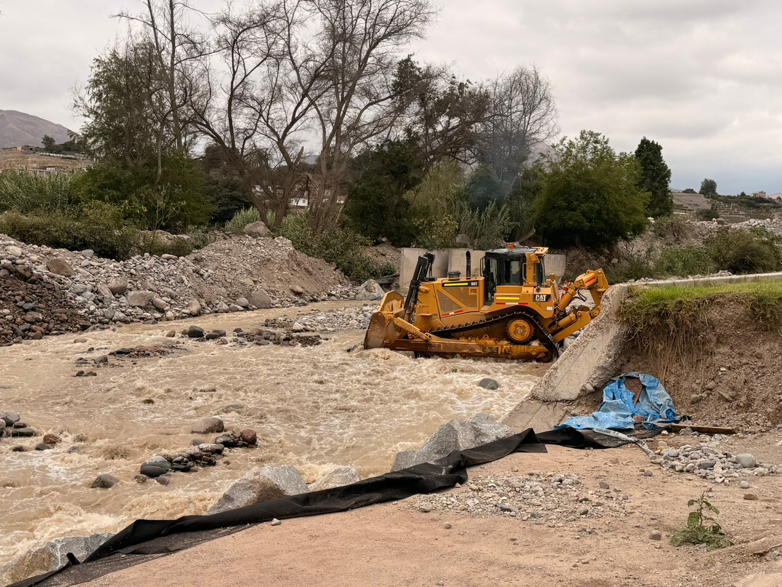 Ante esta situación, la municipalidad distrital movilizó maquinaria pesada para atender la emergencia, entre ellas un tractor oruga, una excavadora y una retroexcavadora, con trabajos activos en sectores como La Rinconada, a fin de restablecer el riego agrícola y evitar mayores pérdidas.
