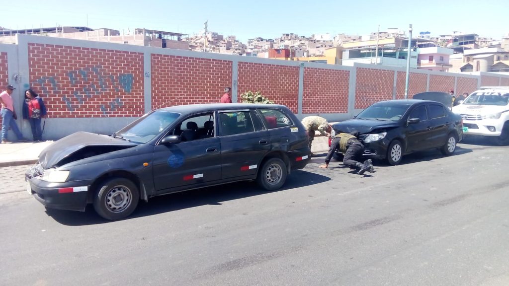 Un accidente de tránsito ocurrió este martes por la mañana en la avenida Bolívar, cerca de la Universidad Nacional de Moquegua (UNAM), involucrando a tres vehículos y dejando como saldo daños materiales.