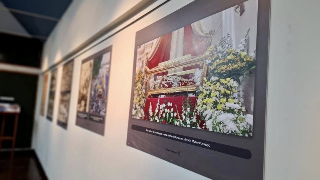 La muestra reúne una selección de fotografías históricas y contemporáneas que documentan la llegada de Santa Fortunata a Moquegua y la evolución de su festividad a lo largo de los años.