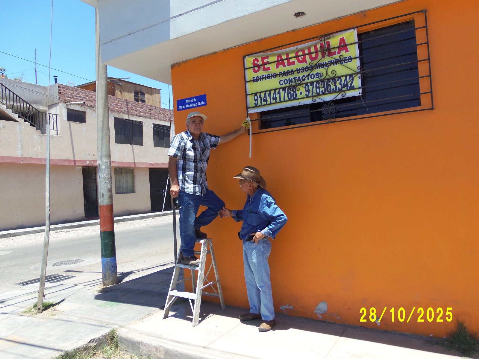 Esto ha motivado a que integrantes de la Asociación de Exalumnos del Colegio Simón Bolívar, motivados por un genuino moqueguanismo aprendido en sus hogares, reforzado en las aulas del colegio bolivariano donde estudiaron, por propia iniciativa, coloquen el nombre correcto, el que corresponde a esta arteria, una de las más amplias y bellas de la ciudad. Entendemos que durante estos doce años las múltiples ocupaciones de nuestras autoridades no les permita cumplir con la tarea que les corresponde; o tal vez no tengan los asesores que los orienten. No interesa cuál sea el motivo. Pero a nosotros no nos anima otro afán que el de rendir nuestro homenaje a quien consideramos el moqueguano más insigne de la república, cuya vida fue un ejemplo de civismo y honradez, modelo de conducta digno de ser imitado en una época tan necesaria de modelos de civismo y honradez como fue la vida de Domingo Nieto, guía para los jóvenes de hoy.