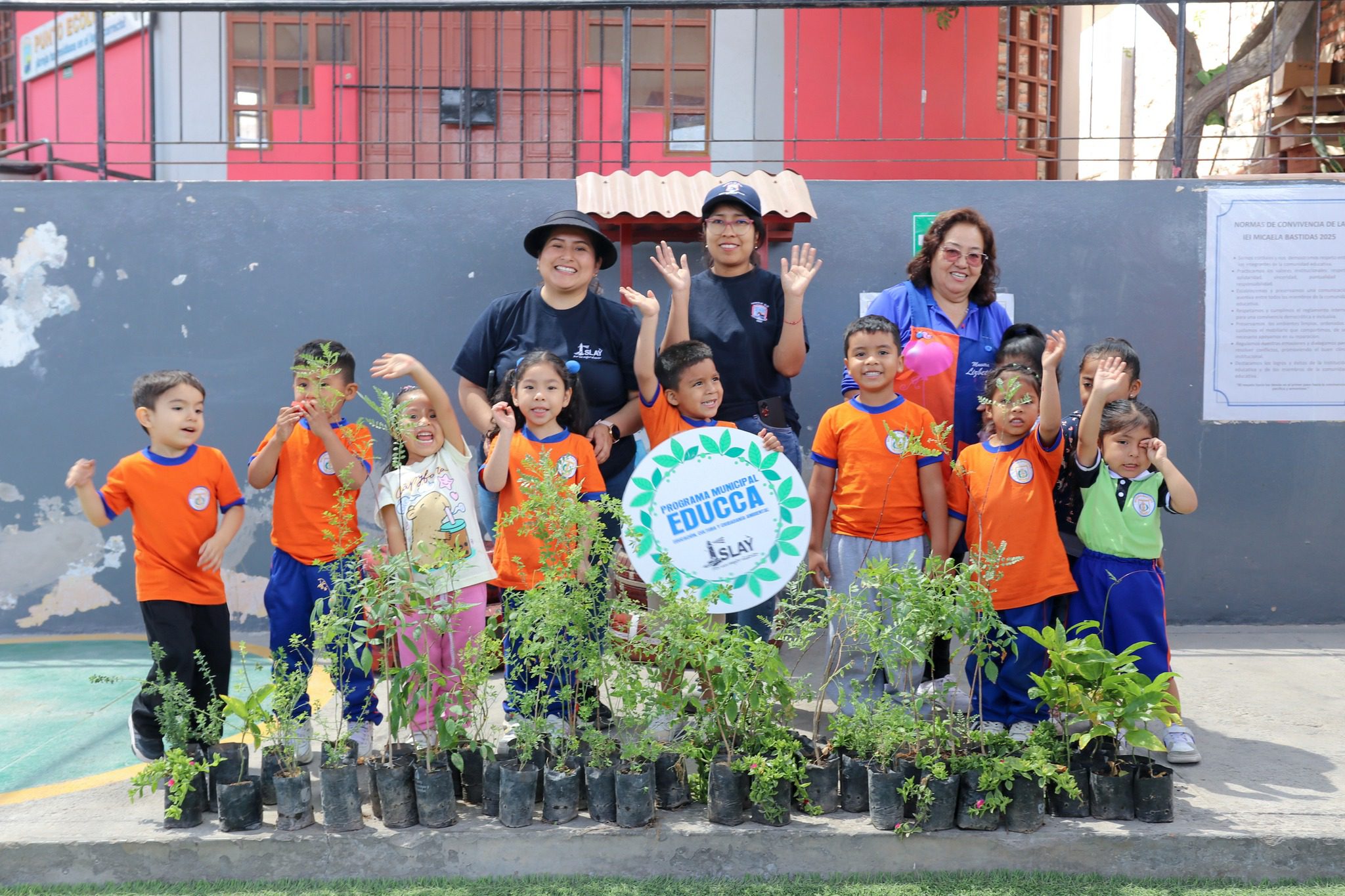 Sesenta y dos plantones (62) fueron entregados este viernes a la Institución Educativa Inicial Micaela Bastidas del distrito de Islay-Matarani, como parte de una jornada de reforestación coordinada por la Gerencia de Servicios a la Ciudad y Gestión Ambiental y la Subgerencia de Parques y Jardines de la comuna local.