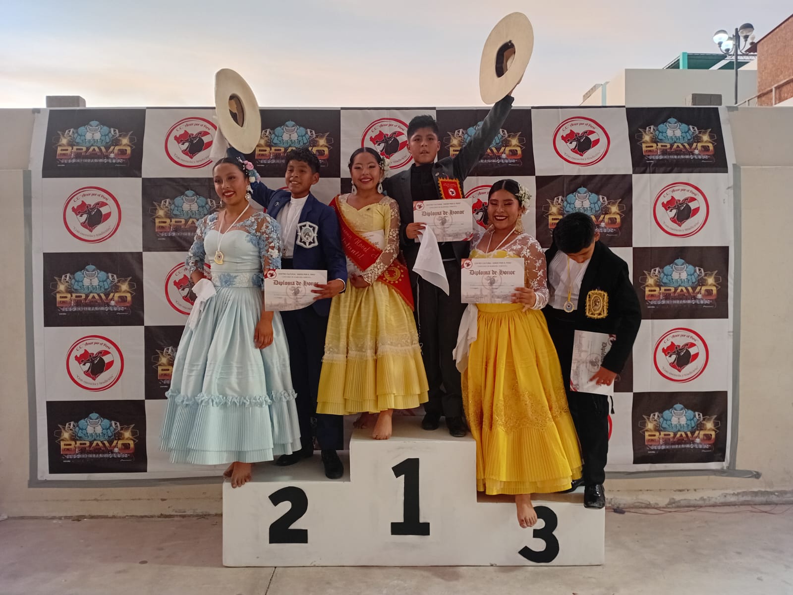 En la categoría infantil, Briana Alvites Arenas, conocida artísticamente como “La Chinita Puerto Bravo”, bailó junto a Austin Montesinos del Carpio. La evaluación consideró ejecución técnica, coordinación y manejo escénico durante la presentación.
