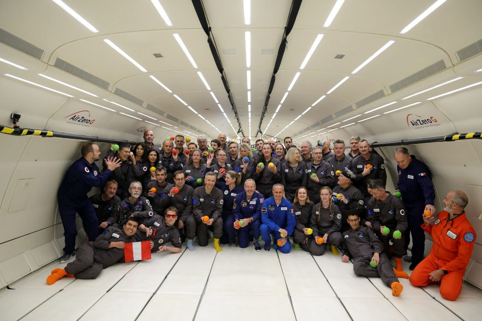 Durante la experiencia, el avión ejecutó 16 parábolas: 1 parábola para experimentar la gravedad marciana, 2 parábolas para experimentar la gravedad lunar y 13 parábolas para experimentar la microgravedad, cada parábola dando la oportunidad de experiencia entre 20 y 25 segundos de gravedad reducida. En esos breves lapsos, los participantes flotaron como astronautas, experimentando de primera mano la sensación de ingravidez. Puedo mencionar que fue impresionante ver y sentir cómo el cuerpo responde cuando el peso desaparece momentáneamente. Es preciso mencionar que también se tuvo la oportunidad de experimentar 1.8 G durante los momentos de aceleración, gravedad similar a la que los astronautas son sometidos al momento de ser lanzados hacia el espacio.