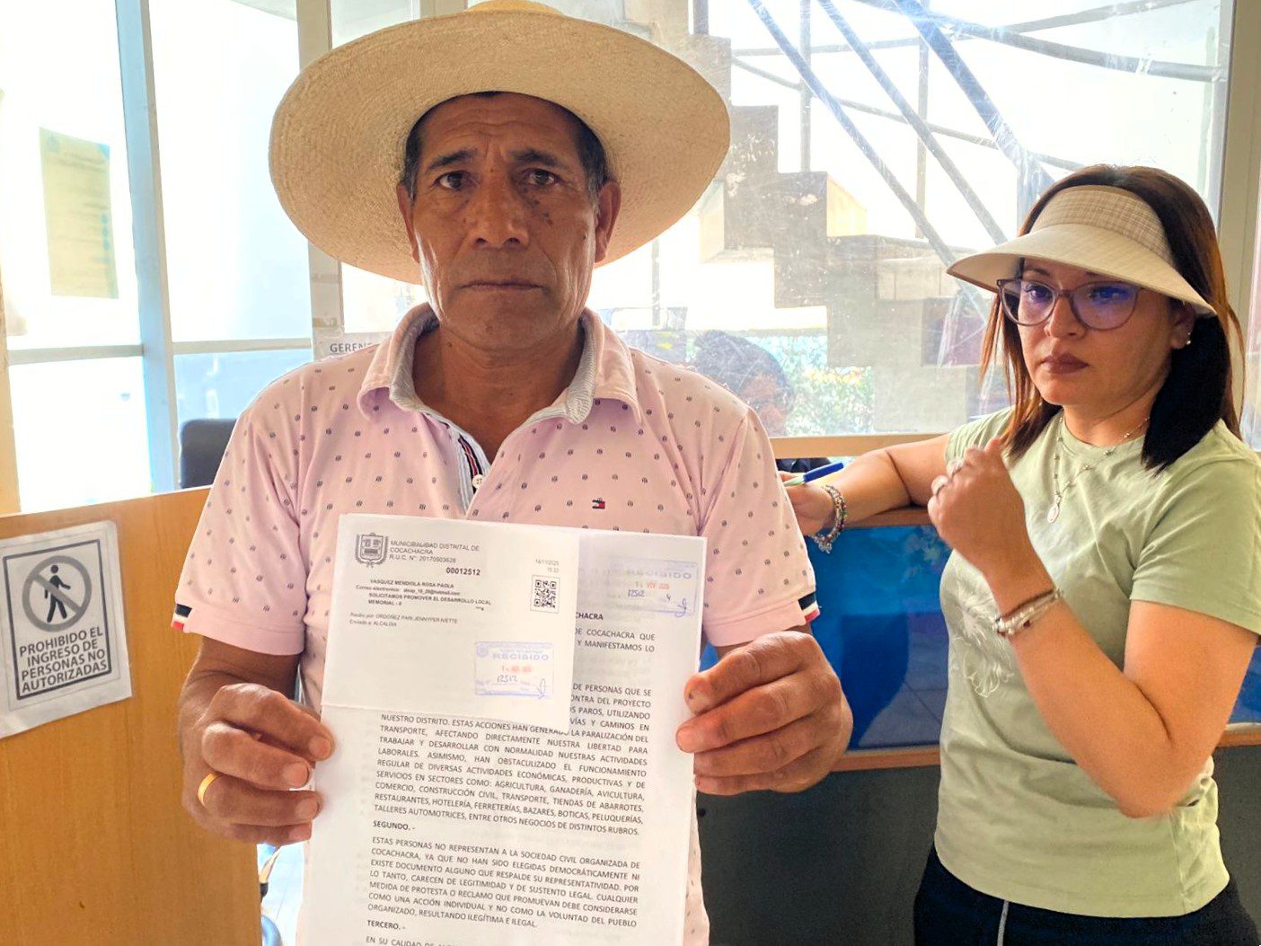 Los manifestantes solicitaron que el alcalde reciba un memorial y traslade sus pedidos a las contratistas del proyecto para que las convocatorias se realicen en Cocachacra.