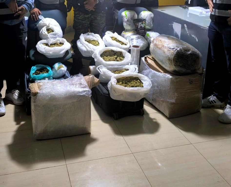 La droga incautada tiene un peso total de 25 kilogramos y 10 gramos de cannabis sativa (marihuana), según información policial.