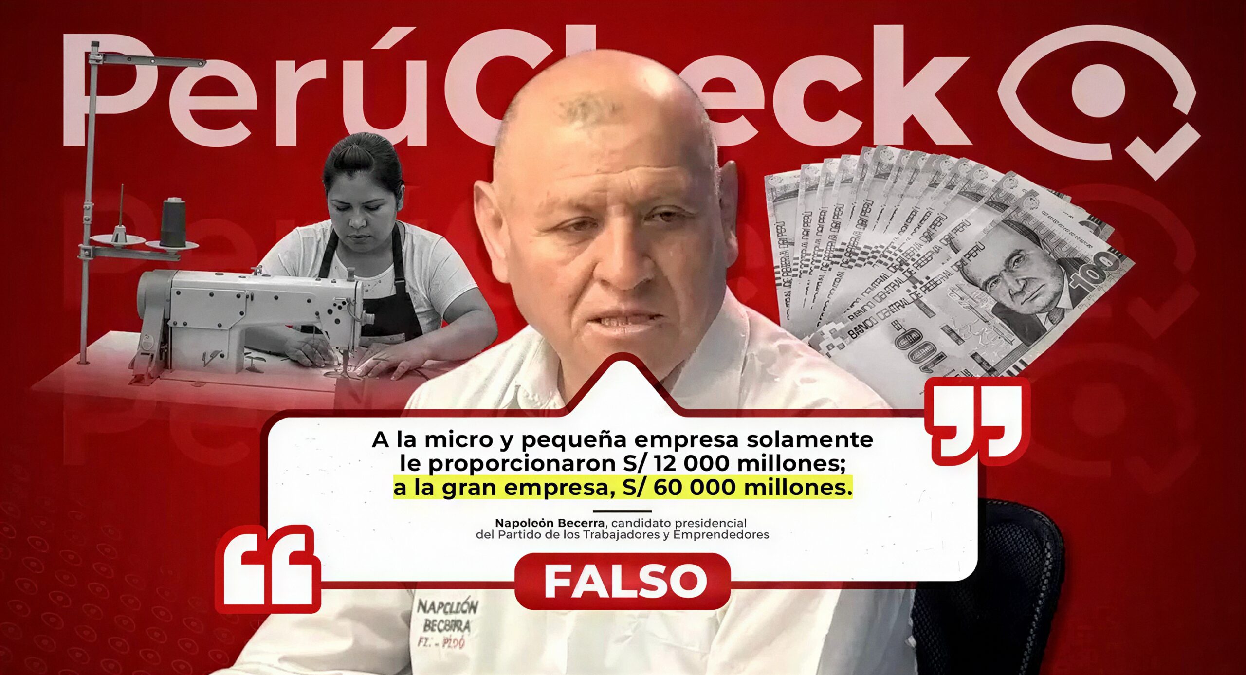 Según los datos del Ministerio de Economía y Finanzas, el Banco Central de Reserva y el Instituto Peruano de Economía, las micro y pequeñas empresas fueron beneficiadas por el programa Reactiva Perú. Éstas recibieron más de S/.26,000 millones y no S/.12,000 millones como dijo el candidato Napoléon Becerra, del Partido de Trabajadores y Emprendedores. Por tanto, PerúCheck califica las declaraciones de Becerra como falsas.