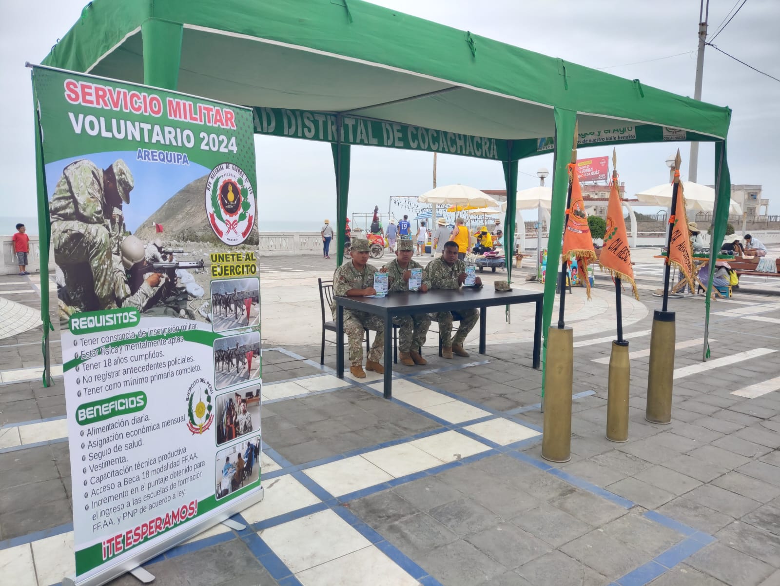 “Invitamos a los jóvenes de entre 18 y 26 años a inscribirse y realizar el servicio militar voluntario. Los participantes accederán a alimentación diaria, una asignación económica mensual, seguro de salud, vestimenta y capacitación técnico-productiva”, señaló el subteniente EP Miguel Solier del Batallón de Guerra N.° 113 de Chucarapi.