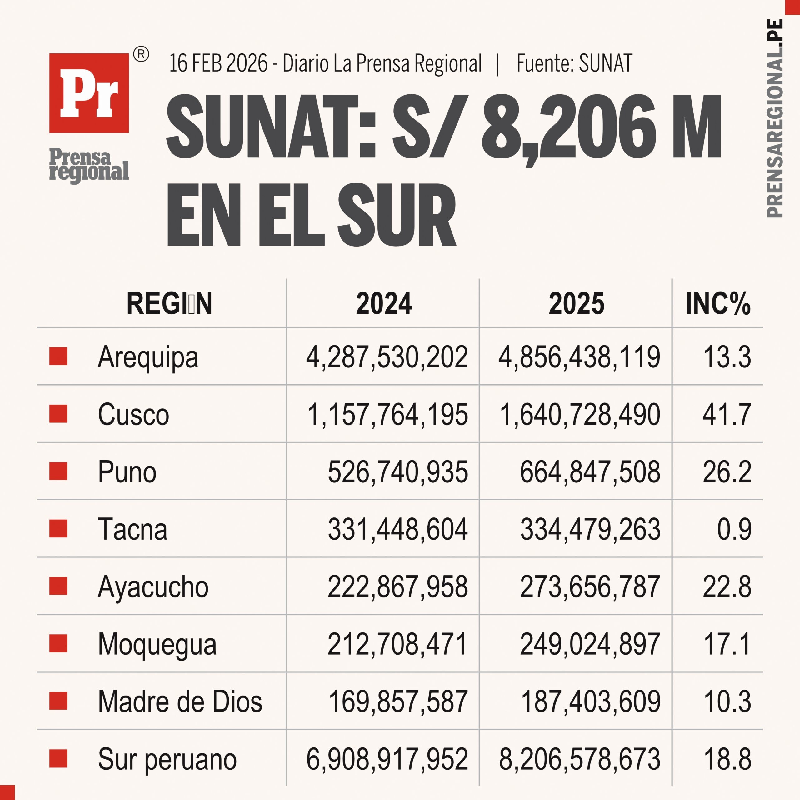 El análisis de la recaudación tributaria en el sur peruano entre 2024 y 2025 evidencia un crecimiento significativo del ingreso fiscal, consolidando una expansión regional de 18.8%, muy cercana al 20% señalado en la data de SUNAT.