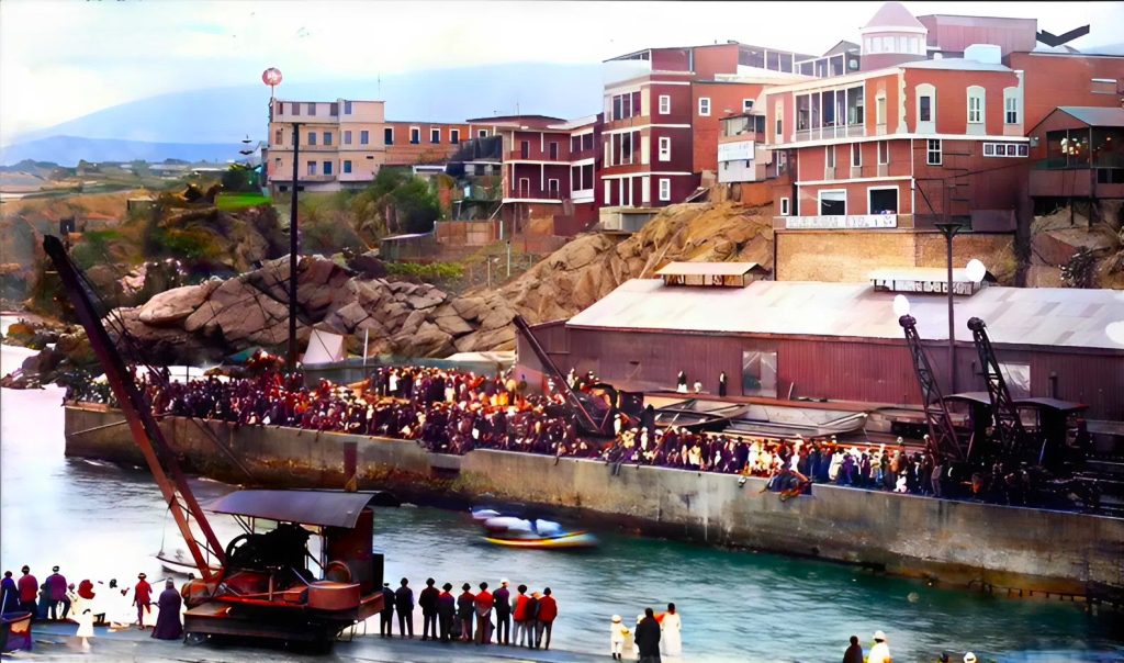 Miramos el muelle y recordamos que había un donkey, y que al muelle llegaban, a las seis de la mañana, faluchos con albacoras, congrios y cojinovas. Los cargadores “Tarzán” y “Acacao” llevaban los productos marinos al mercado San José. En el muelle se pescaba gavinza, jurel y caballa, con lloto y jibia.